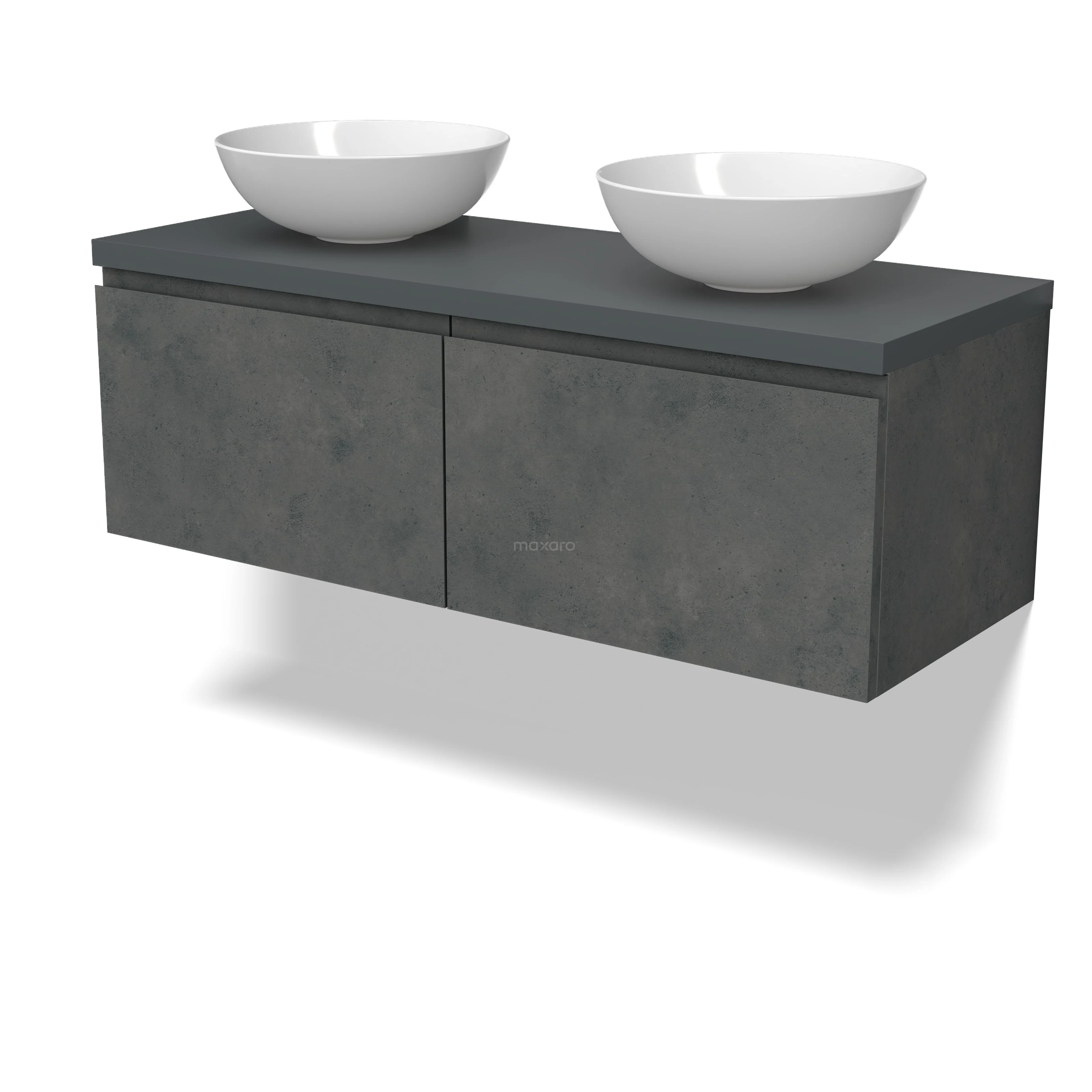 Modulo Plato Badmöbel mit Aufsatzwaschbecken | 120 cm Dunkelgrauer Beton Grifflos front Dunkelgrau blatt 2 nebeneinanderliegende Schubladen BMK12-01904