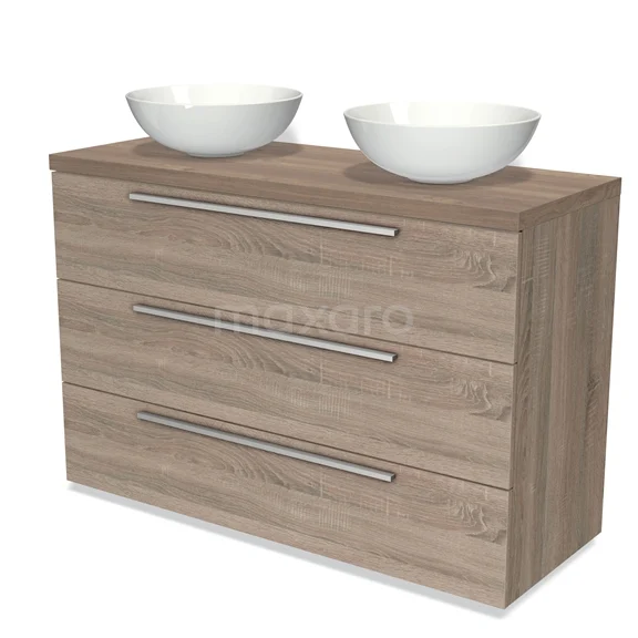 Modulo Plato Badmöbel mit Aufsatzwaschbecken | 120 cm Eiche Flach front Mittelbraune Eiche blatt 3 Schubladen