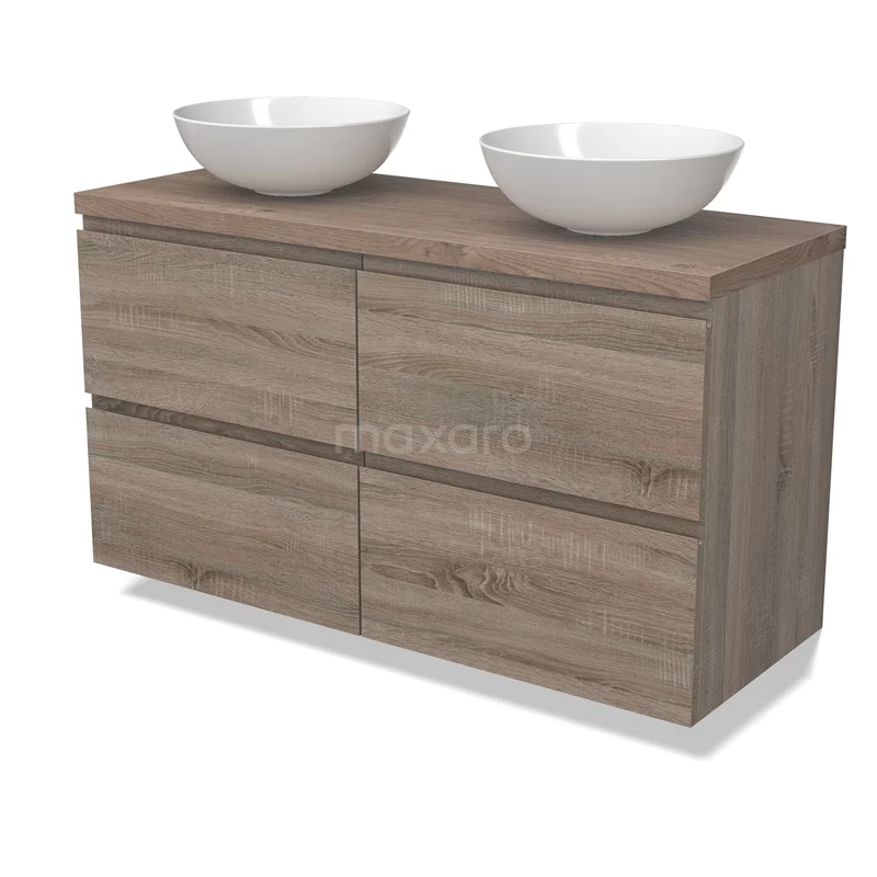 Modulo Plato Badmöbel mit Aufsatzwaschbecken | 120 cm Eiche Grifflos front Mittelbraune Eiche blatt 4 Schubladen