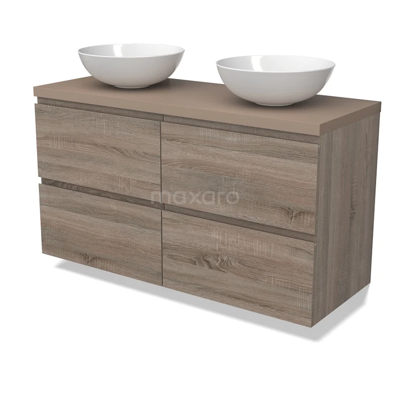 Modulo Plato Badmöbel mit Aufsatzwaschbecken | 120 cm Eiche Grifflos front Taupe blatt 4 Schubladen