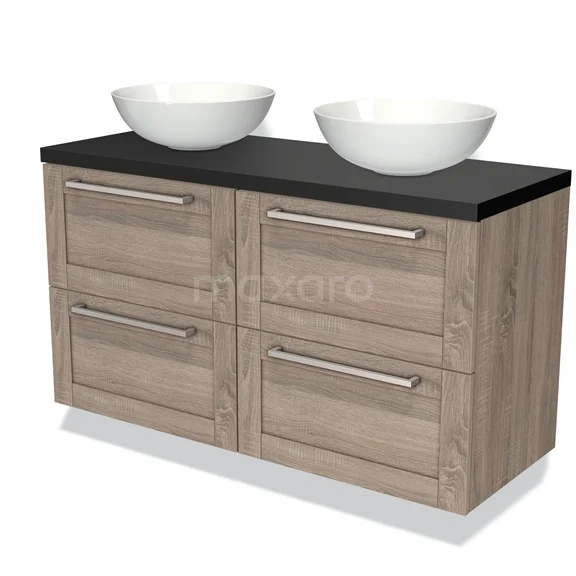 Modulo Plato Badmöbel mit Aufsatzwaschbecken | 120 cm Eiche Rahmen front Matt Schwarz blatt 4 Schubladen