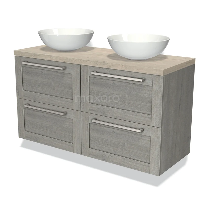 Modulo Plato Badmöbel mit Aufsatzwaschbecken | 120 cm Graue Eiche Rahmen front Hellgraue Eiche blatt 4 Schubladen