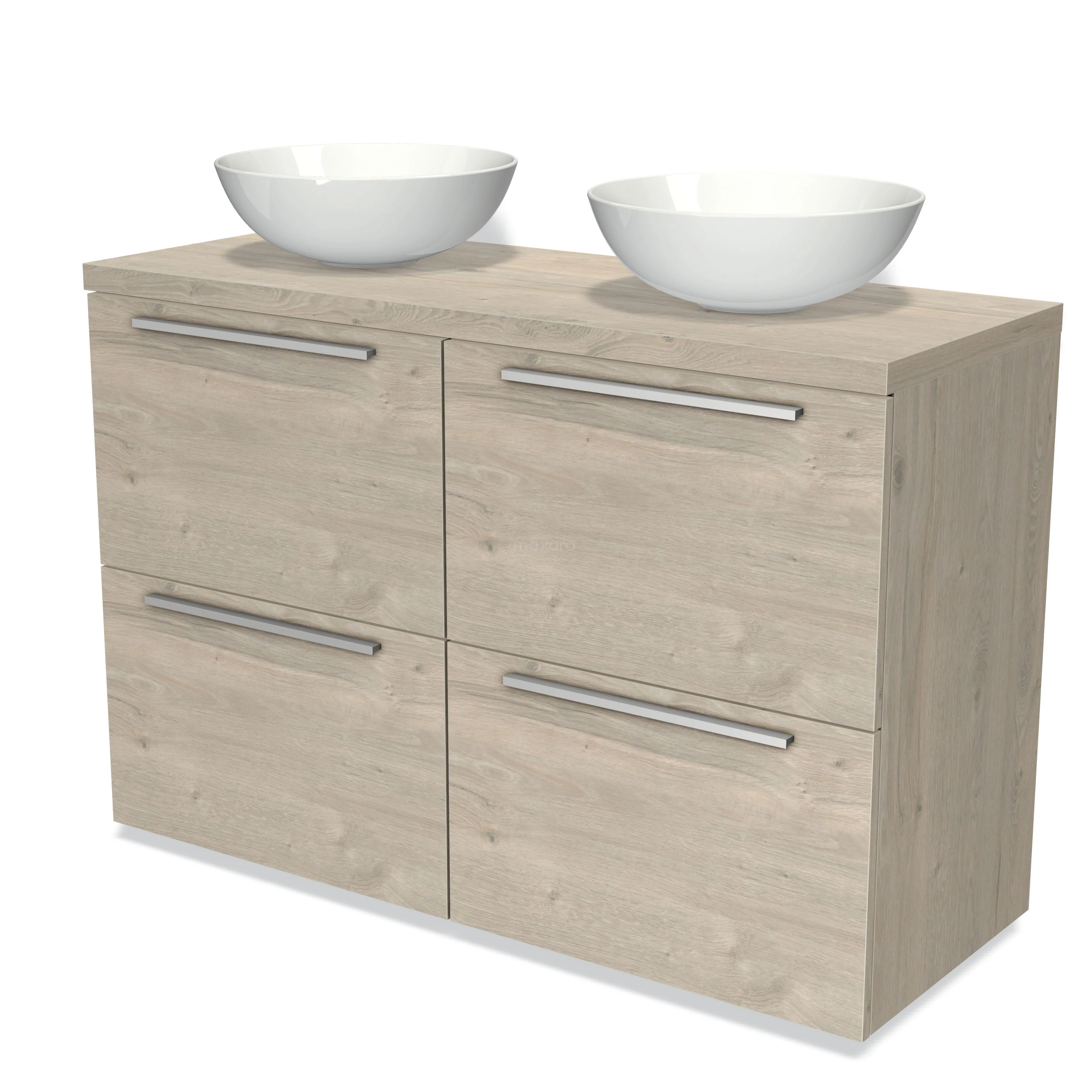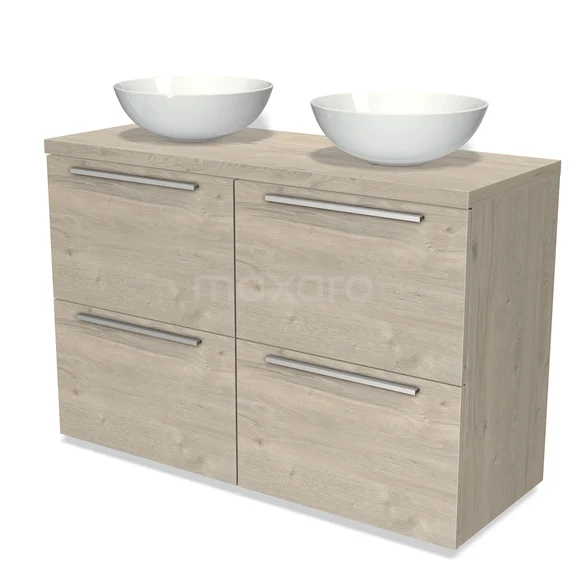 Modulo Plato Badmöbel mit Aufsatzwaschbecken | 120 cm Hellgraue Eiche Flach front Hellgraue Eiche blatt 4 hohe Schubladen