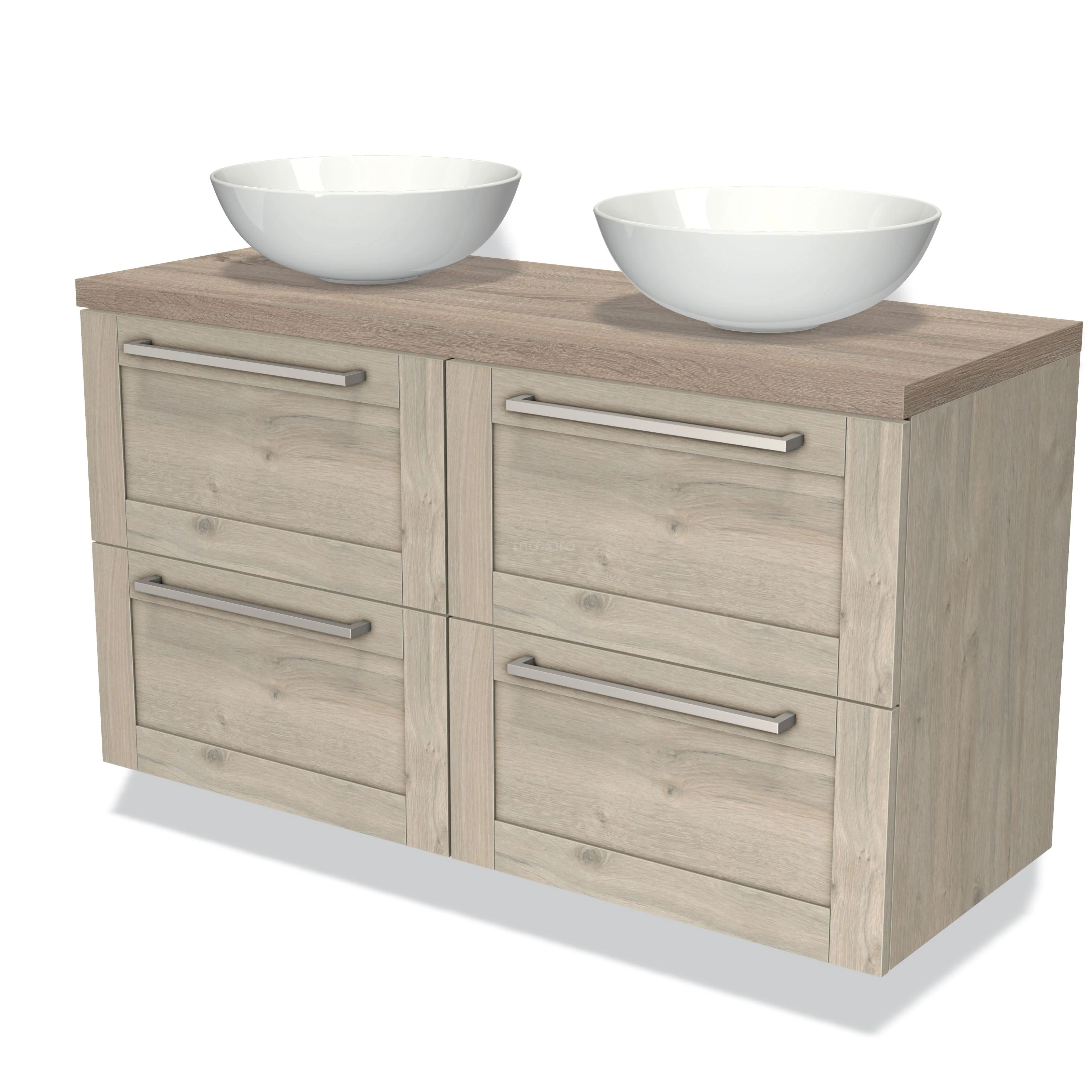 Modulo Plato Badmöbel mit Aufsatzwaschbecken | 120 cm Hellgraue Eiche Rahmen front Eiche blatt 4 Schubladen
