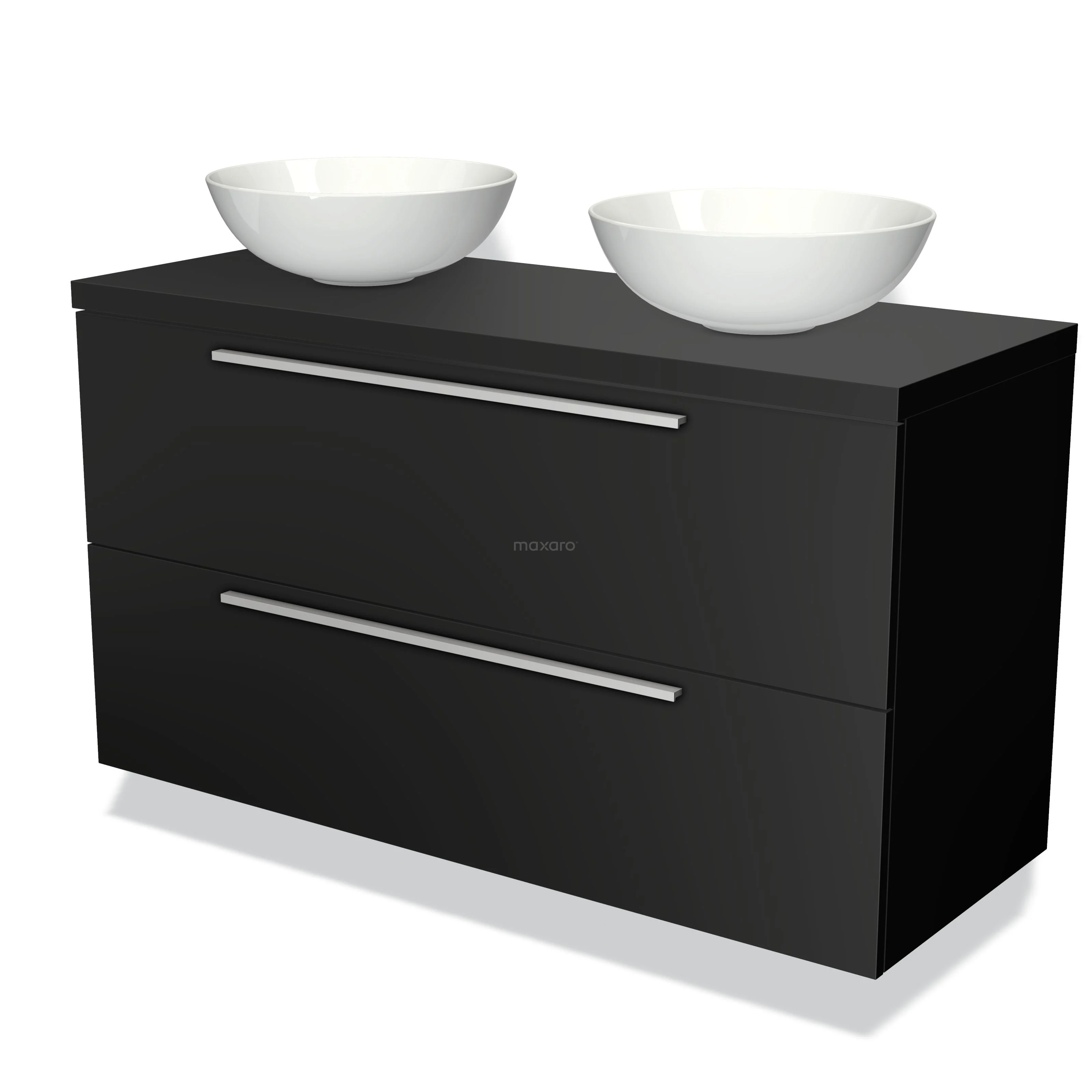 Modulo Plato Badmöbel mit Aufsatzwaschbecken | 120 cm Matt Schwarz Flach front Matt Schwarz blatt 2 übereinanderliegende Schubladen
