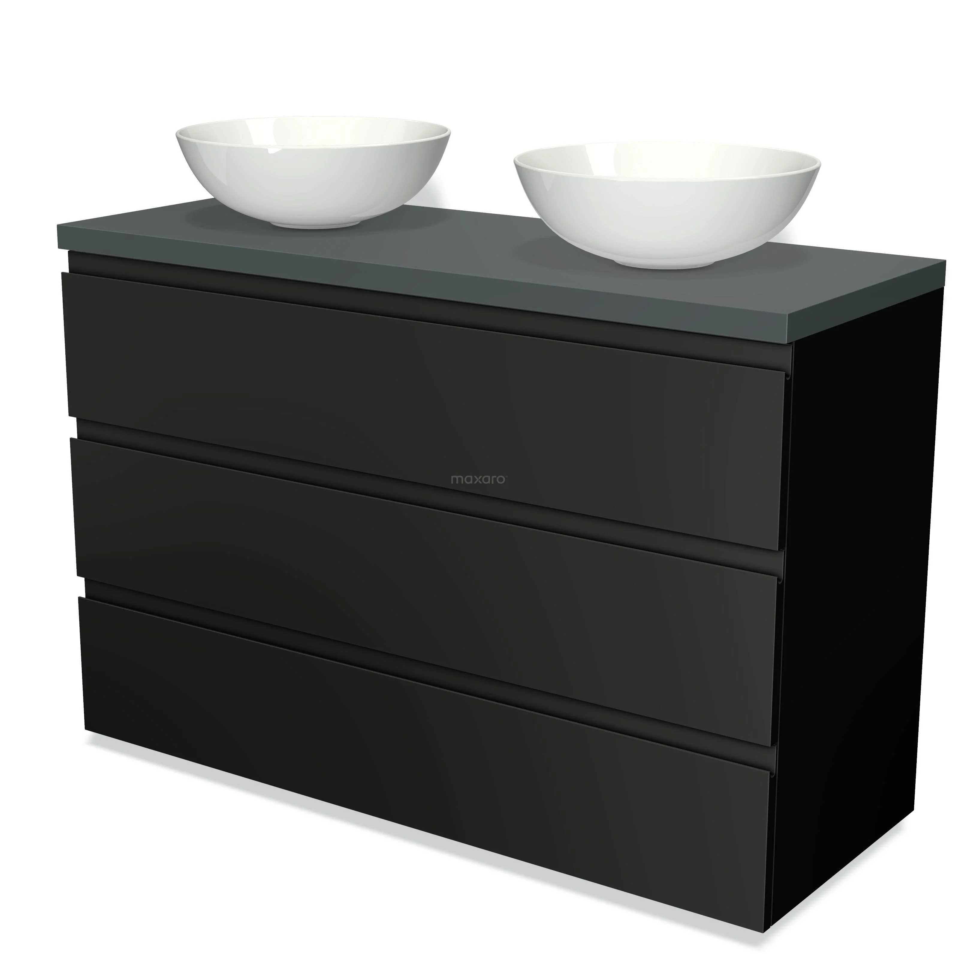 Modulo Plato Badmöbel mit Aufsatzwaschbecken | 120 cm Matt Schwarz Grifflos front Dunkelgrau blatt 3 Schubladen