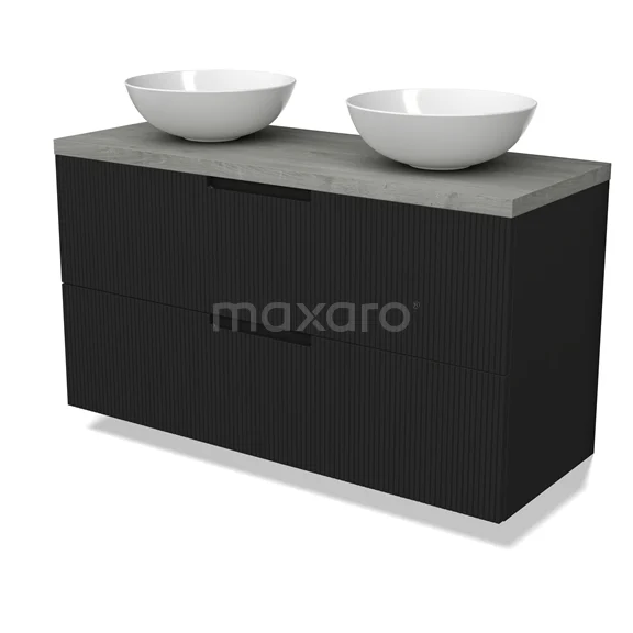 Modulo Plato Badmöbel mit Aufsatzwaschbecken | 120 cm Matt Schwarz Linie front Graue Eiche blatt 2 übereinanderliegende Schubladen BMK17-03085