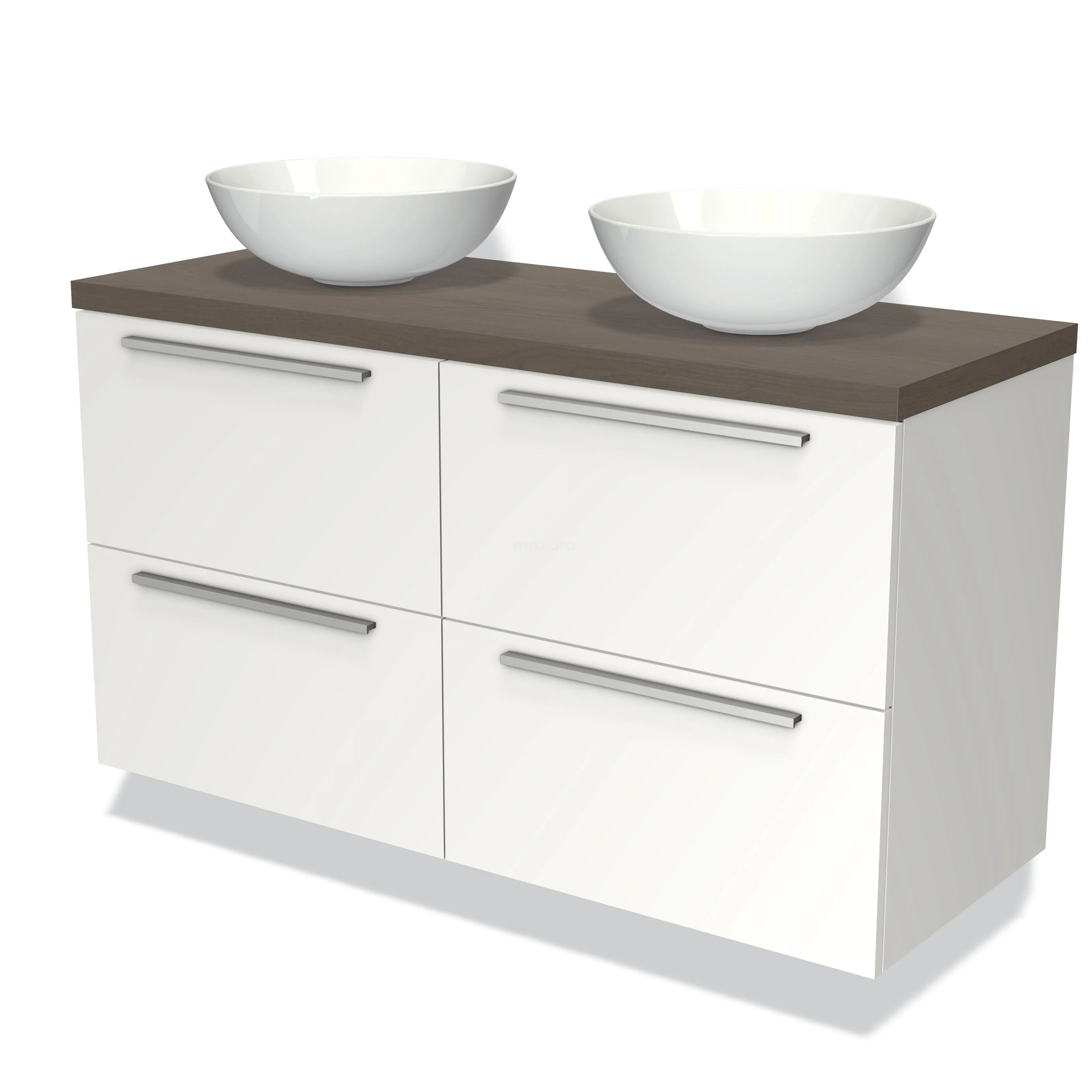 Modulo Plato Badmöbel mit Aufsatzwaschbecken | 120 cm Matt Weiß Flach front Dunkelbraune Eiche blatt 4 Schubladen