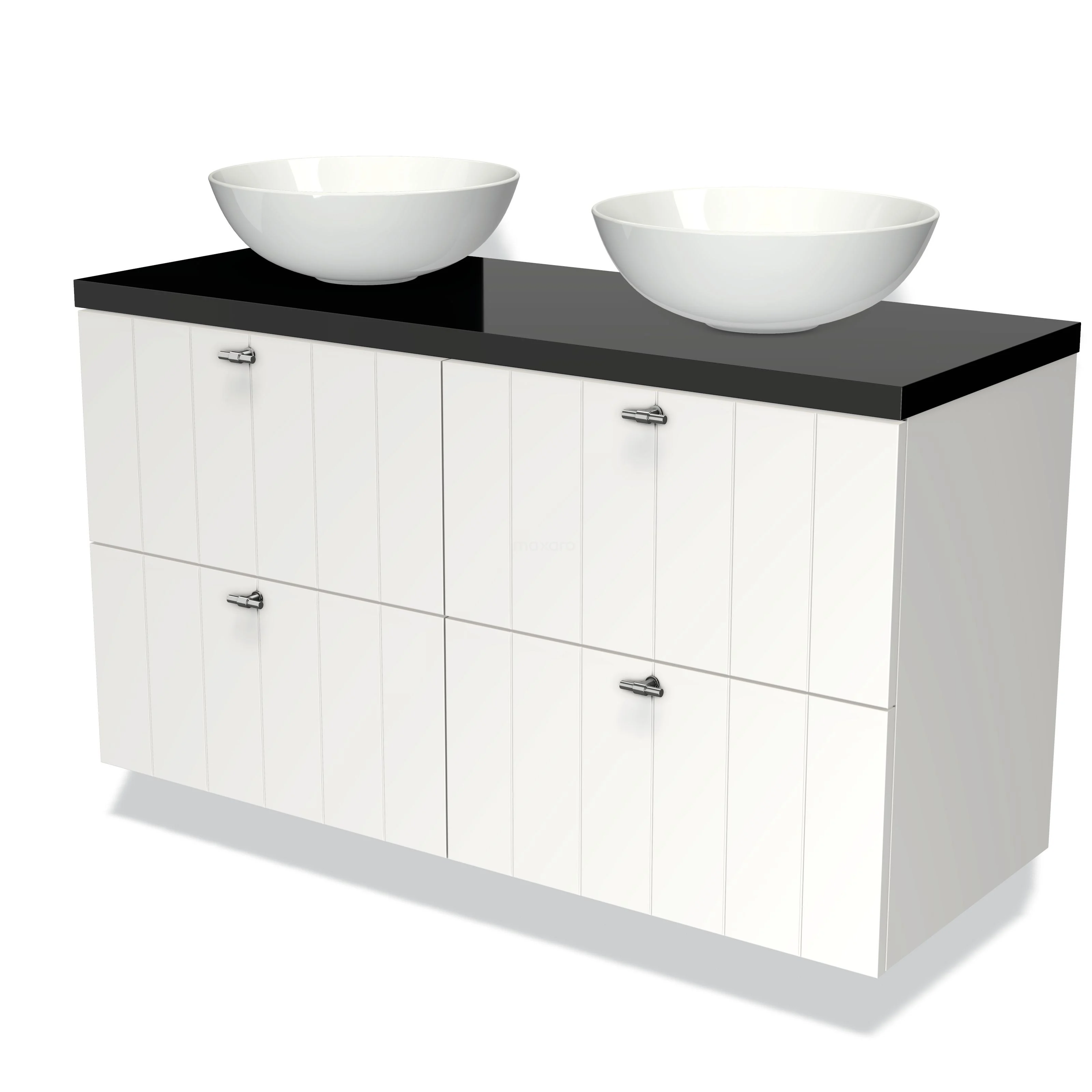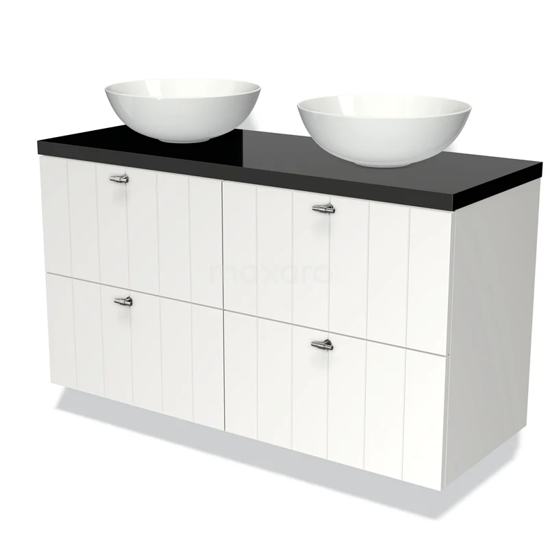 Modulo Plato Badmöbel mit Aufsatzwaschbecken | 120 cm Matt Weiß Lamelle front Hochglanz Schwarz blatt 4 Schubladen