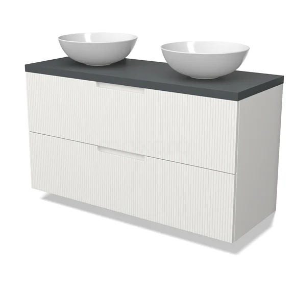 Modulo Plato Badmöbel mit Aufsatzwaschbecken | 120 cm Matt Weiß Linie front Dunkelgrau blatt 2 übereinanderliegende Schubladen
