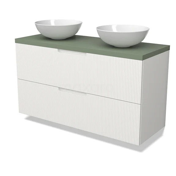 Modulo Plato Badmöbel mit Aufsatzwaschbecken | 120 cm Matt Weiß Linie front Salbeigrün blatt 2 übereinanderliegende Schubladen BMK17-03095
