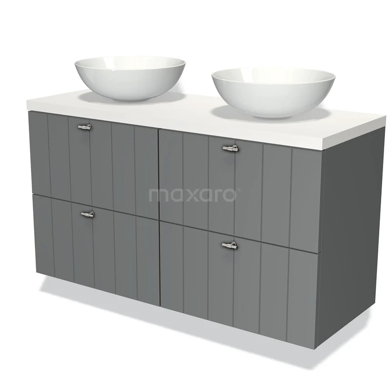 Modulo Plato Badmöbel mit Aufsatzwaschbecken | 120 cm Mittelgrau Lamelle front Matt Weiß blatt 4 Schubladen