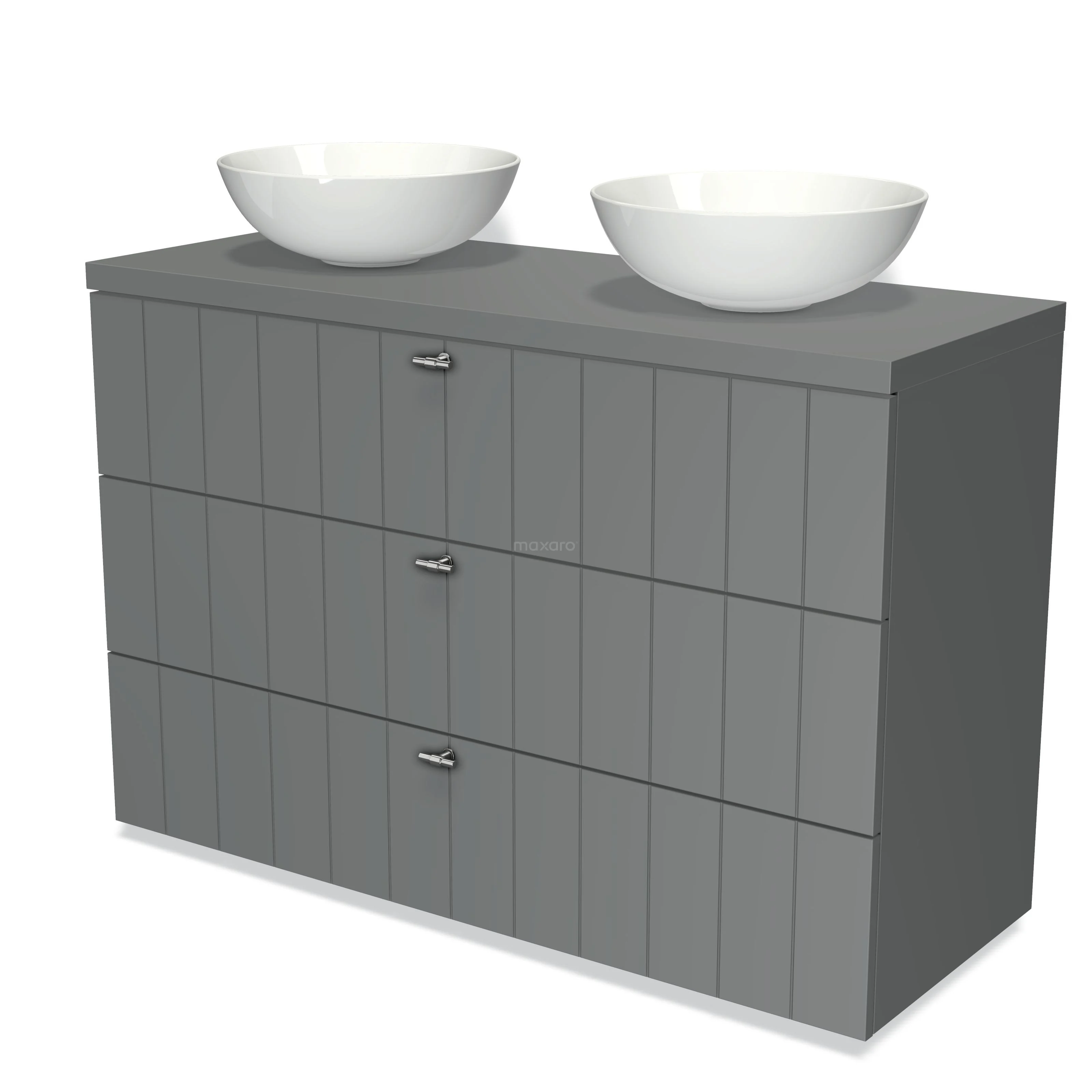 Modulo Plato Badmöbel mit Aufsatzwaschbecken | 120 cm Mittelgrau Lamelle front Mittelgrau blatt 3 Schubladen