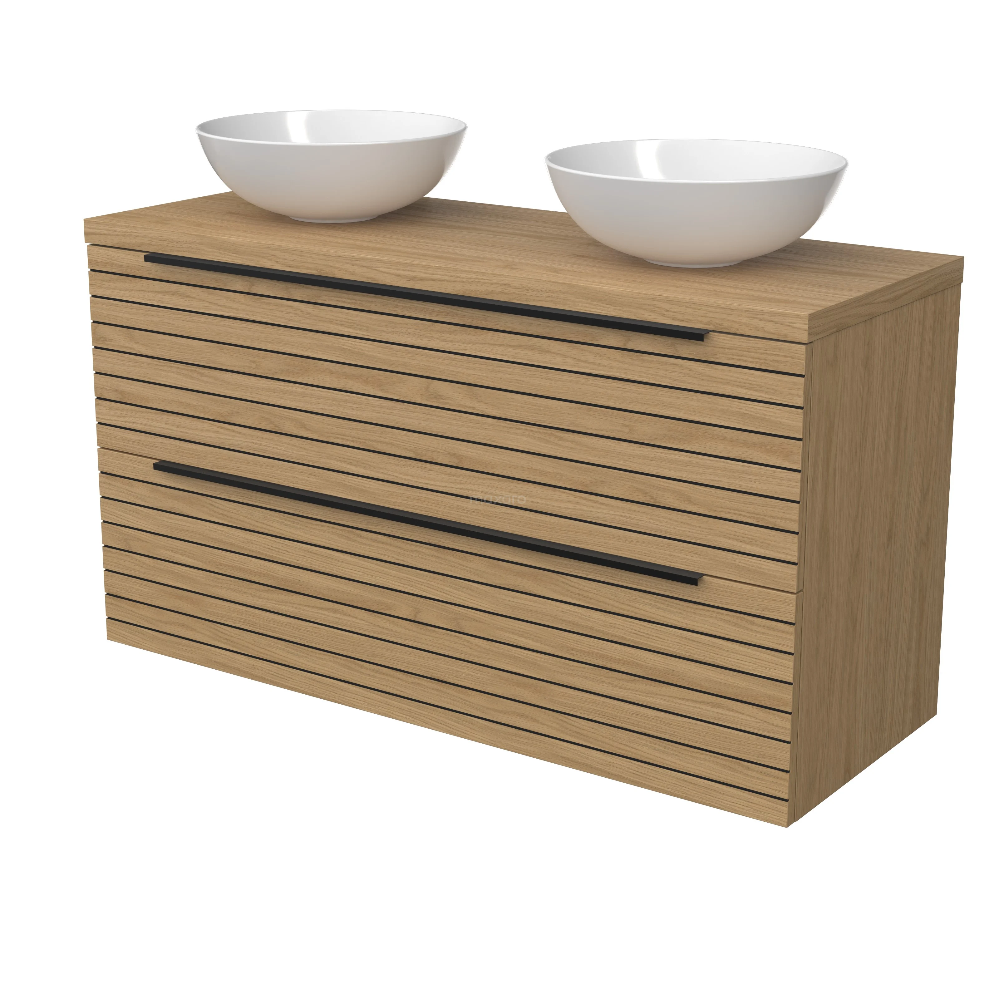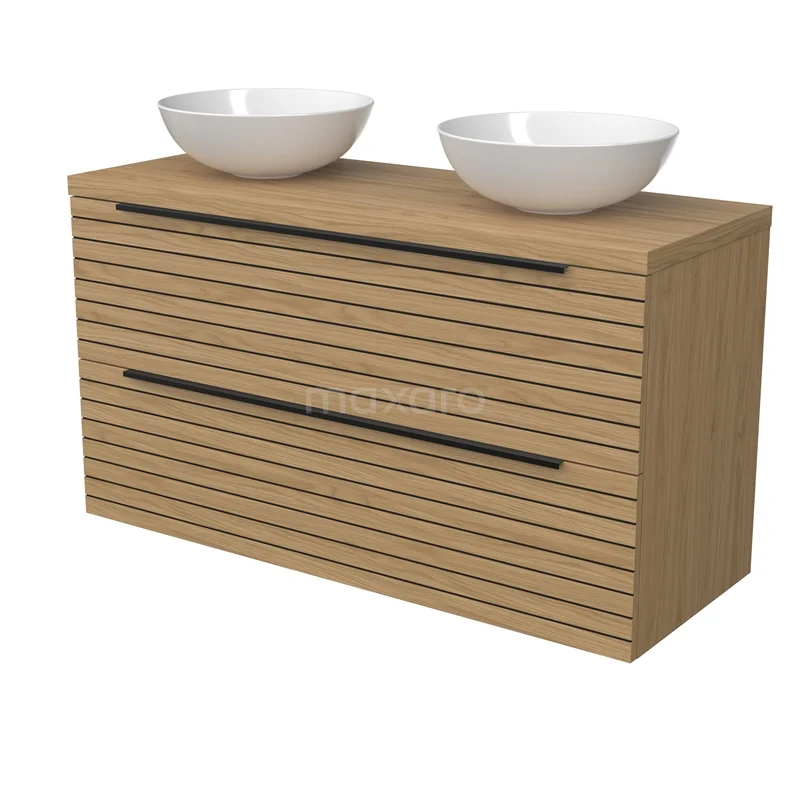 Modulo Plato Badmöbel mit Aufsatzwaschbecken | 120 cm Natürliches Furnier Streifen front Natürliches Furnier blatt 2 übereinanderliegende Schubladen