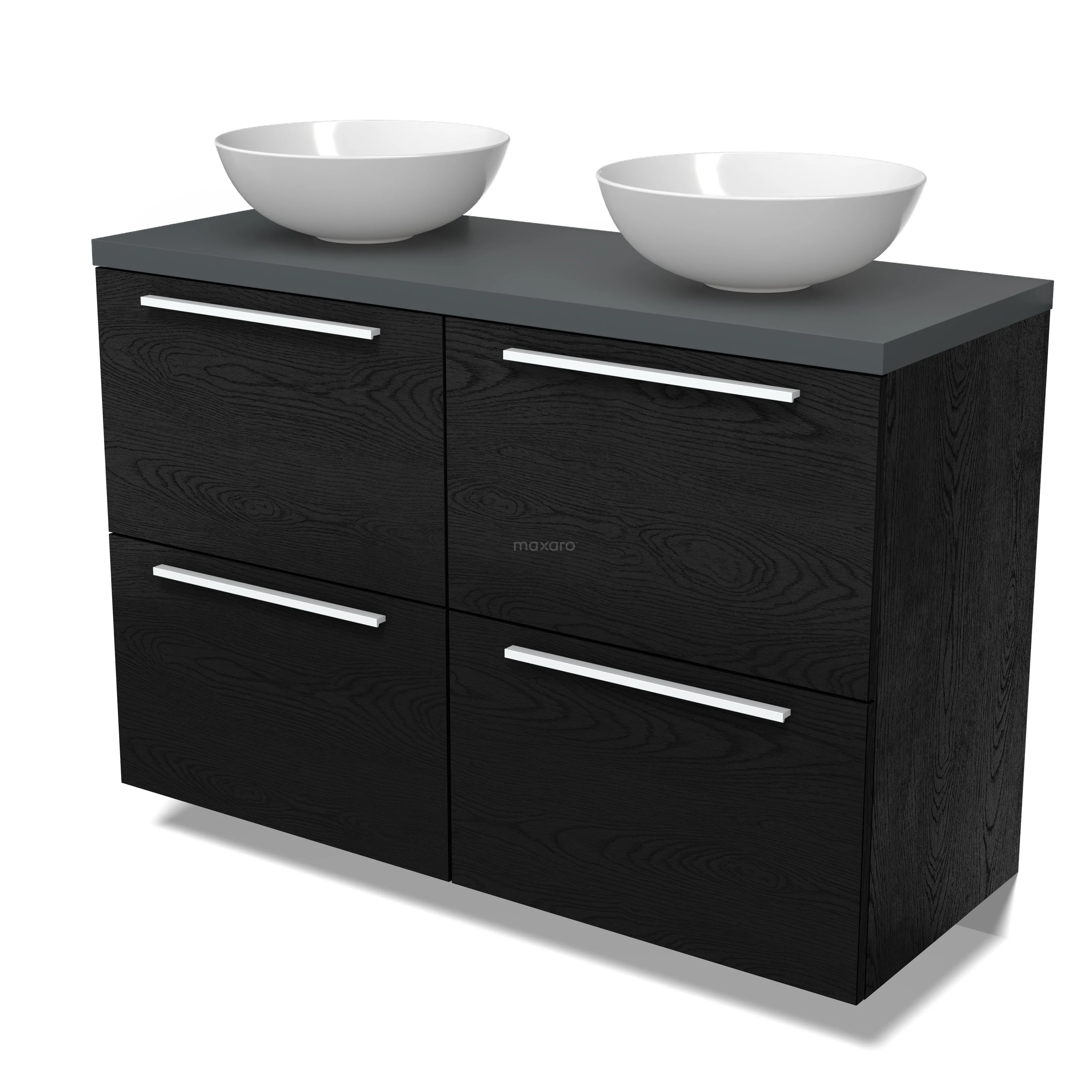 Modulo Plato Badmöbel mit Aufsatzwaschbecken | 120 cm Schwarze Eiche Flach front Dunkelgrau blatt 4 hohe Schubladen