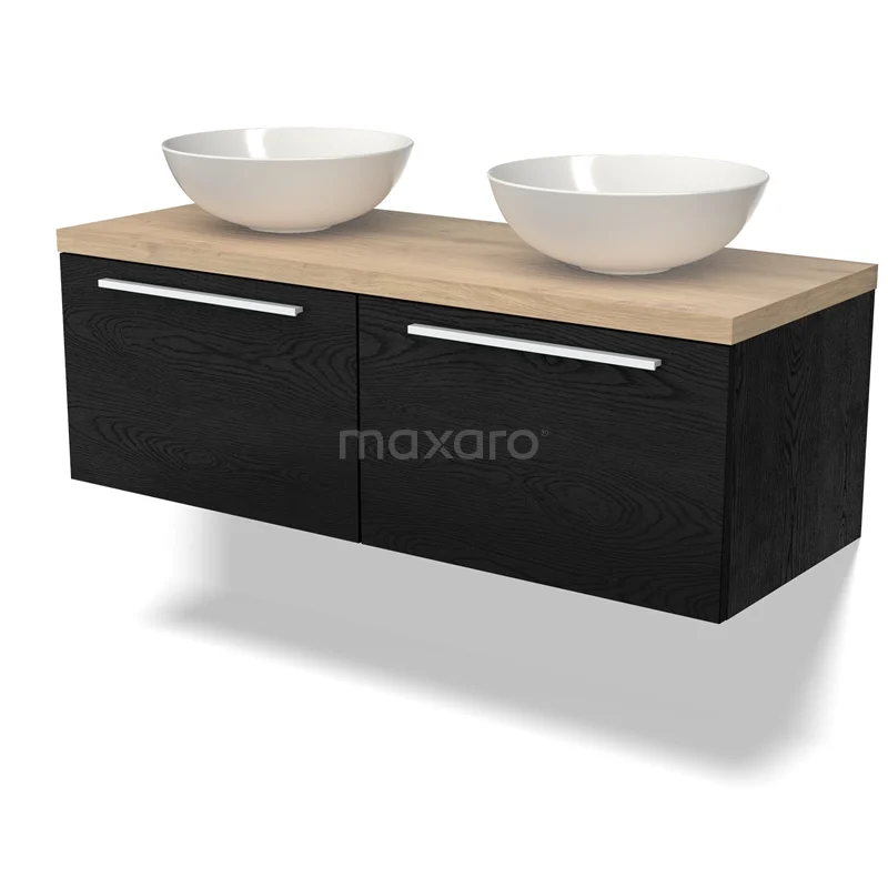 Modulo Plato Badmöbel mit Aufsatzwaschbecken | 120 cm Schwarze Eiche Flach front Hellbraune Eiche blatt 2 nebeneinanderliegende Schubladen