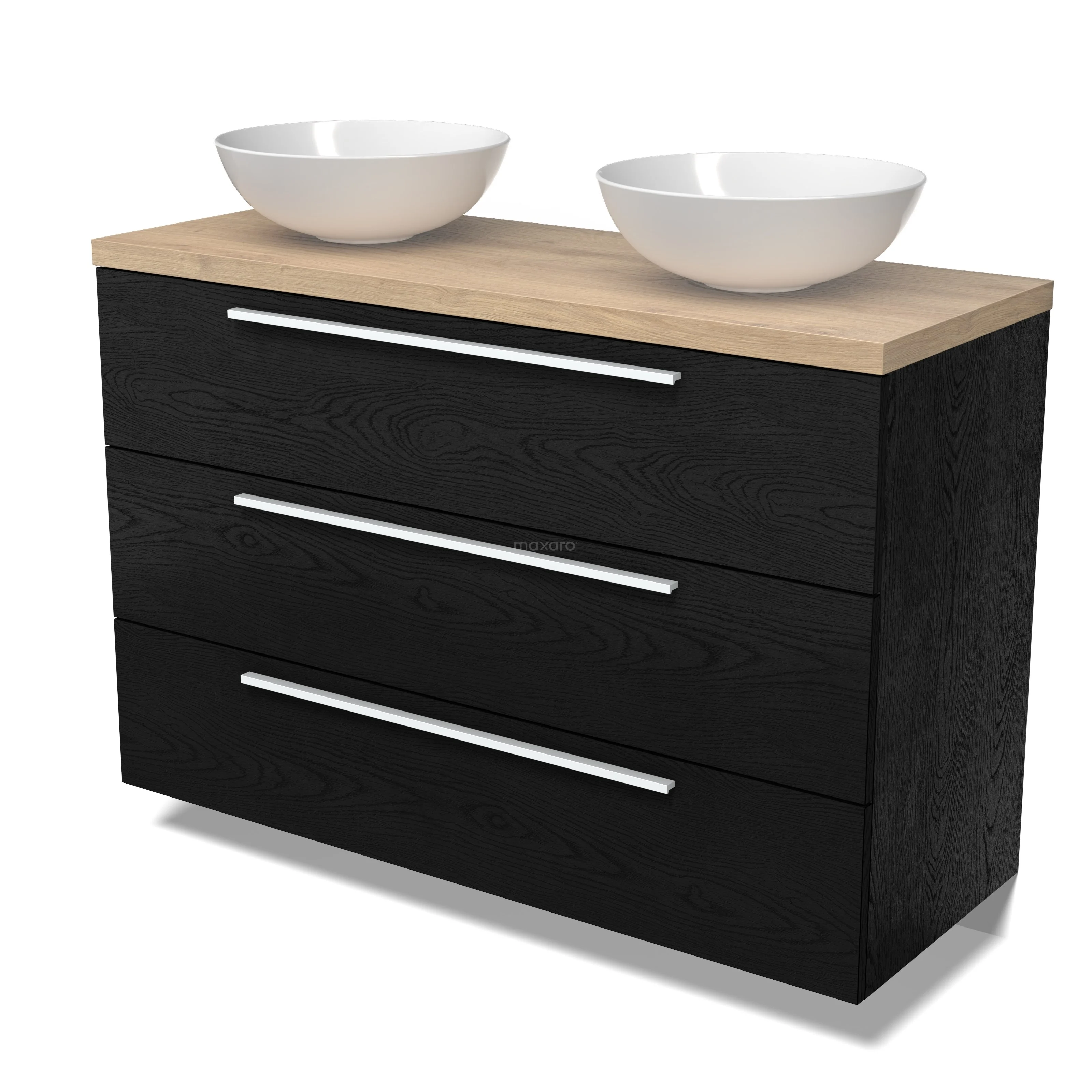Modulo Plato Badmöbel mit Aufsatzwaschbecken | 120 cm Schwarze Eiche Flach front Hellbraune Eiche blatt 3 Schubladen