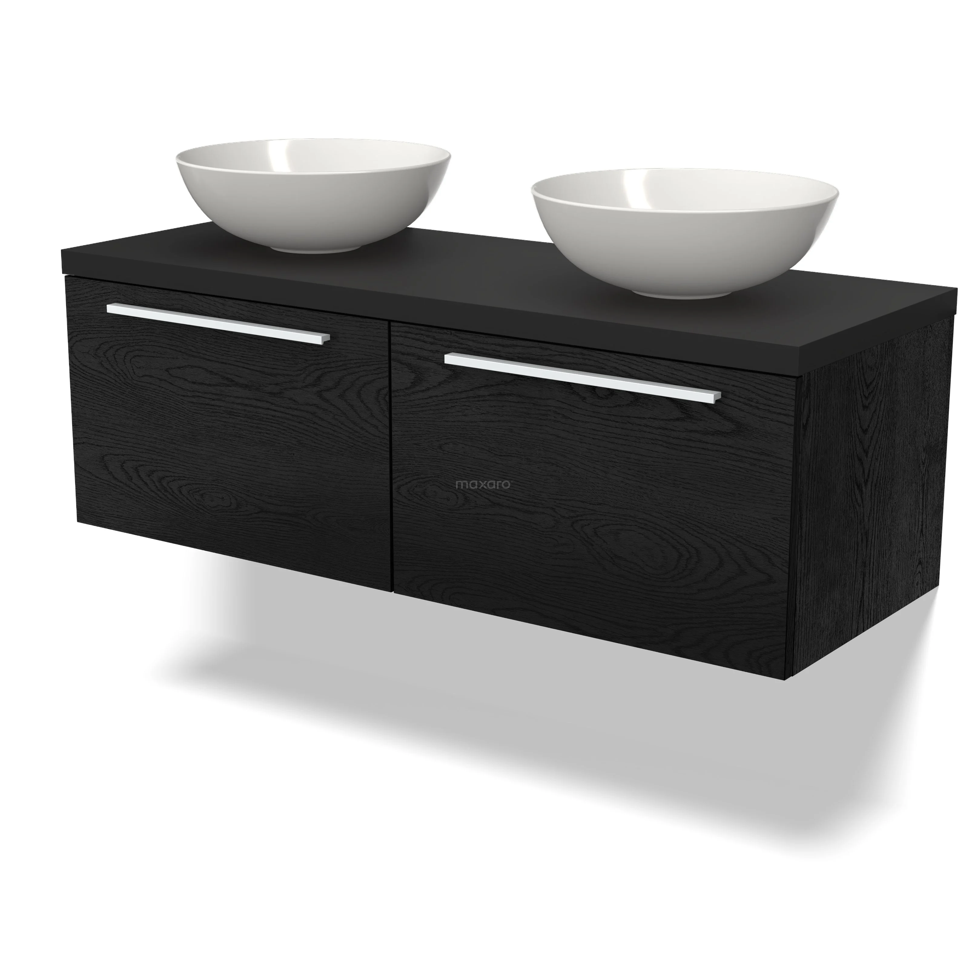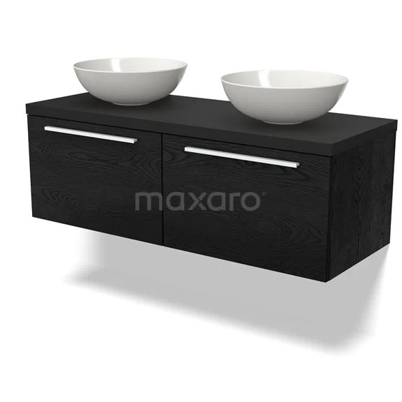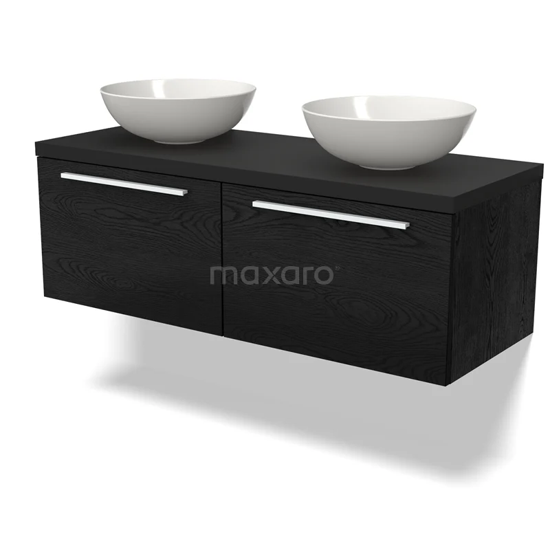 Modulo Plato Badmöbel mit Aufsatzwaschbecken | 120 cm Schwarze Eiche Flach front Matt Schwarz blatt 2 nebeneinanderliegende Schubladen