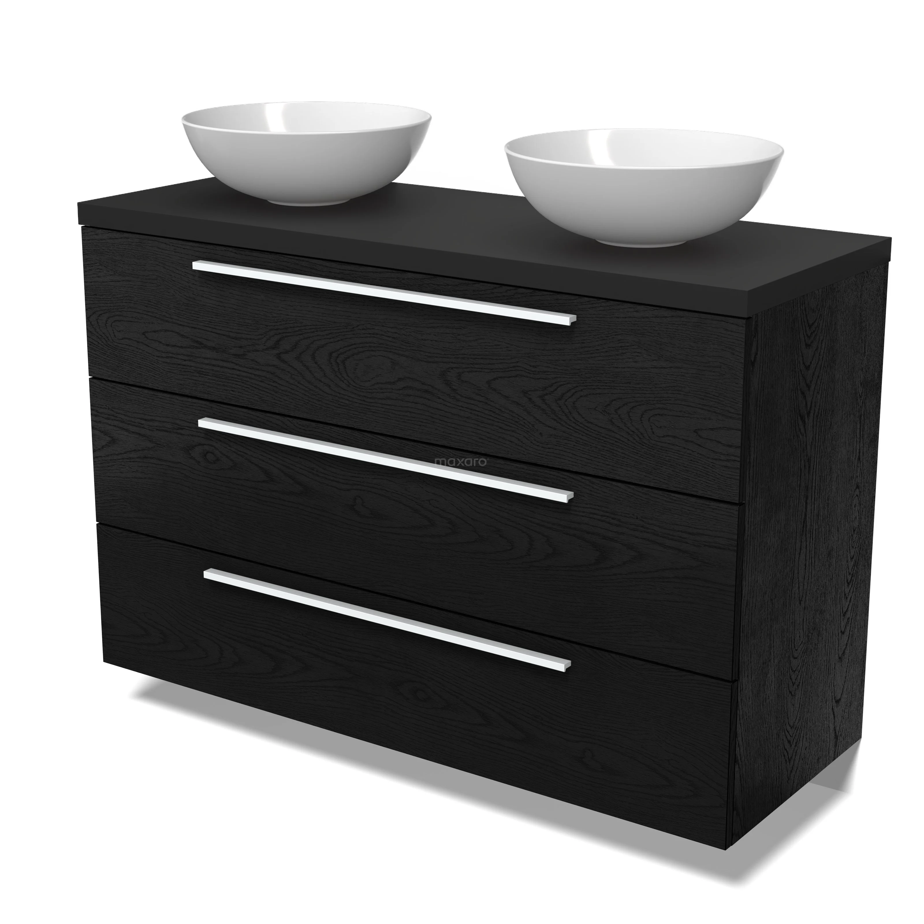 Modulo Plato Badmöbel mit Aufsatzwaschbecken | 120 cm Schwarze Eiche Flach front Matt Schwarz blatt 3 Schubladen