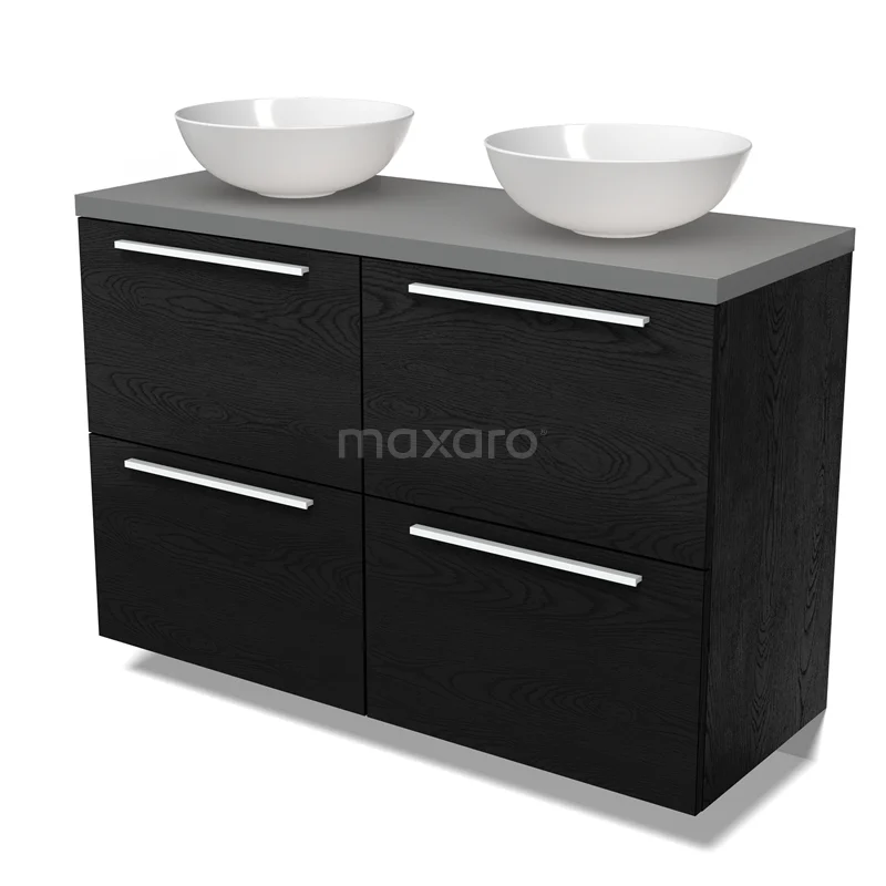 Modulo Plato Badmöbel mit Aufsatzwaschbecken | 120 cm Schwarze Eiche Flach front Mittelgrau blatt 4 hohe Schubladen