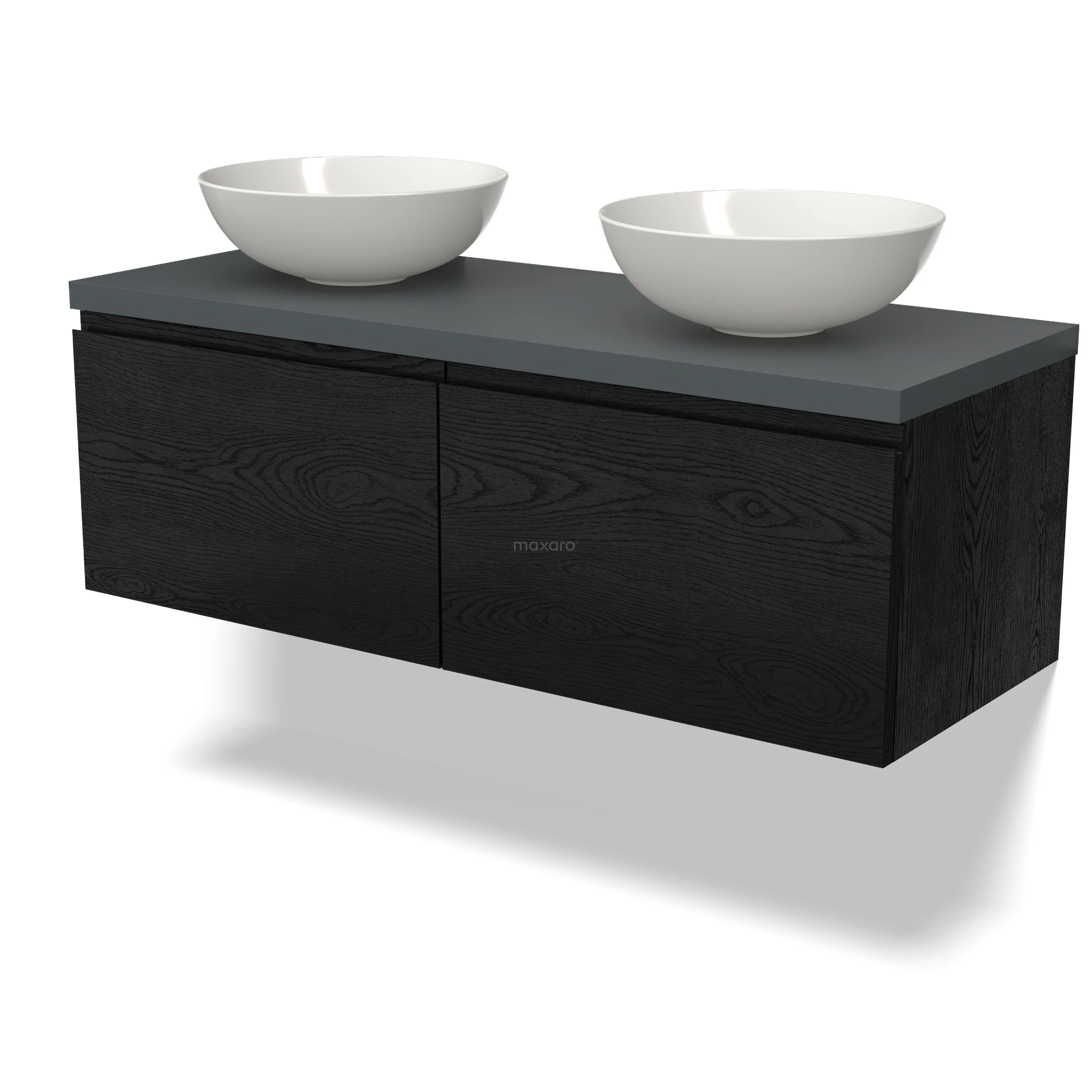 Modulo Plato Badmöbel mit Aufsatzwaschbecken | 120 cm Schwarze Eiche Grifflos front Dunkelgrau blatt 2 nebeneinanderliegende Schubladen