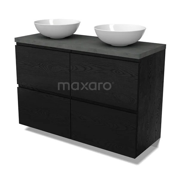 Modulo Plato Badmöbel mit Aufsatzwaschbecken | 120 cm Schwarze Eiche Grifflos front Dunkelgrauer Beton blatt 4 hohe Schubladen