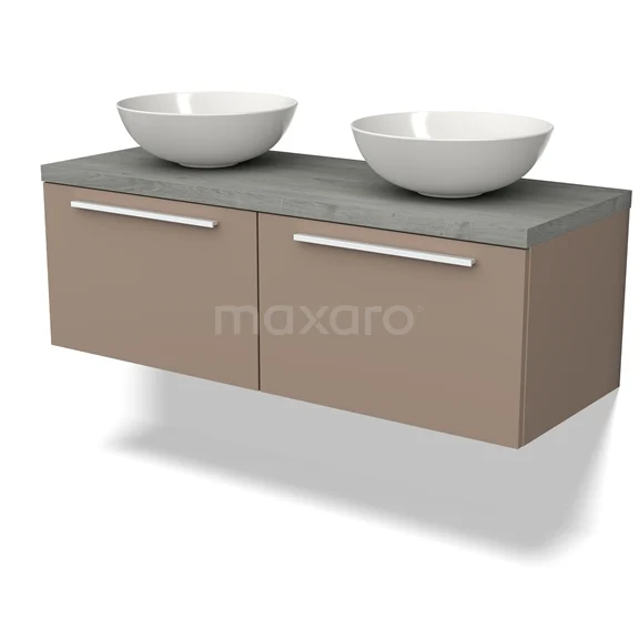 Modulo Plato Badmöbel mit Aufsatzwaschbecken | 120 cm Taupe Flach front Graue Eiche blatt 2 nebeneinanderliegende Schubladen