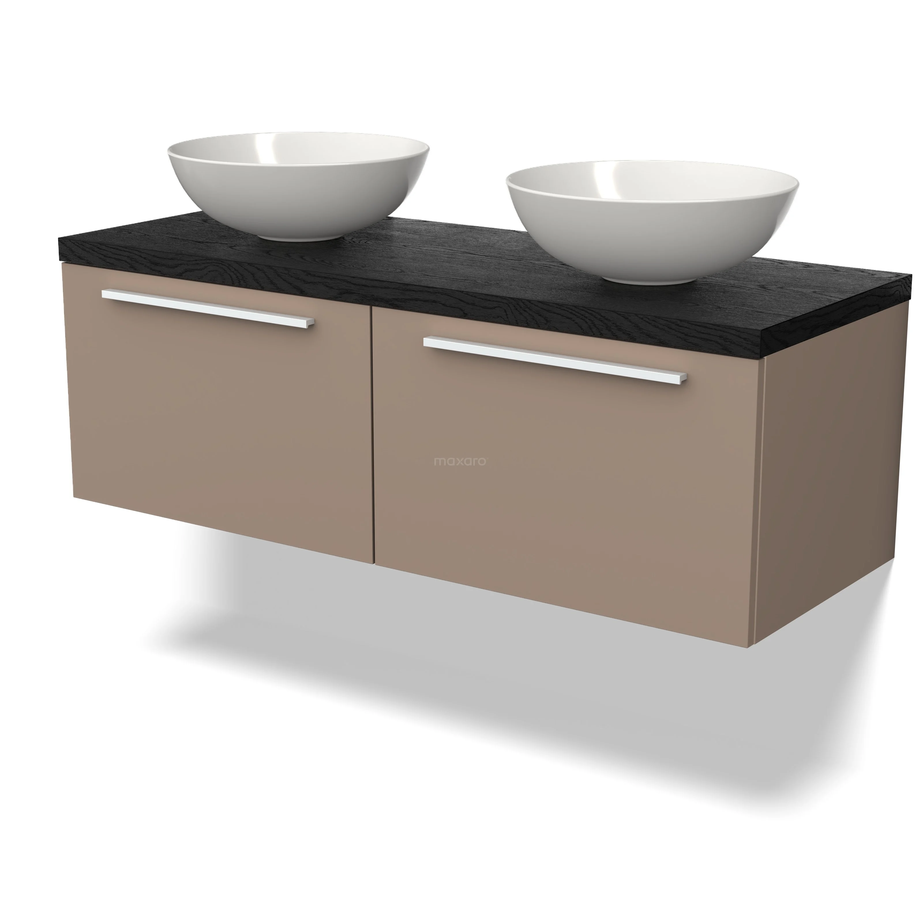 Modulo Plato Badmöbel mit Aufsatzwaschbecken | 120 cm Taupe Flach front Schwarze Eiche blatt 2 nebeneinanderliegende Schubladen