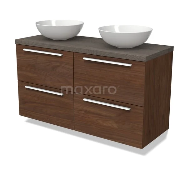 Modulo Plato Badmöbel mit Aufsatzwaschbecken | 120 cm Walnuss Flach front Dunkelbraune Eiche blatt 4 Schubladen