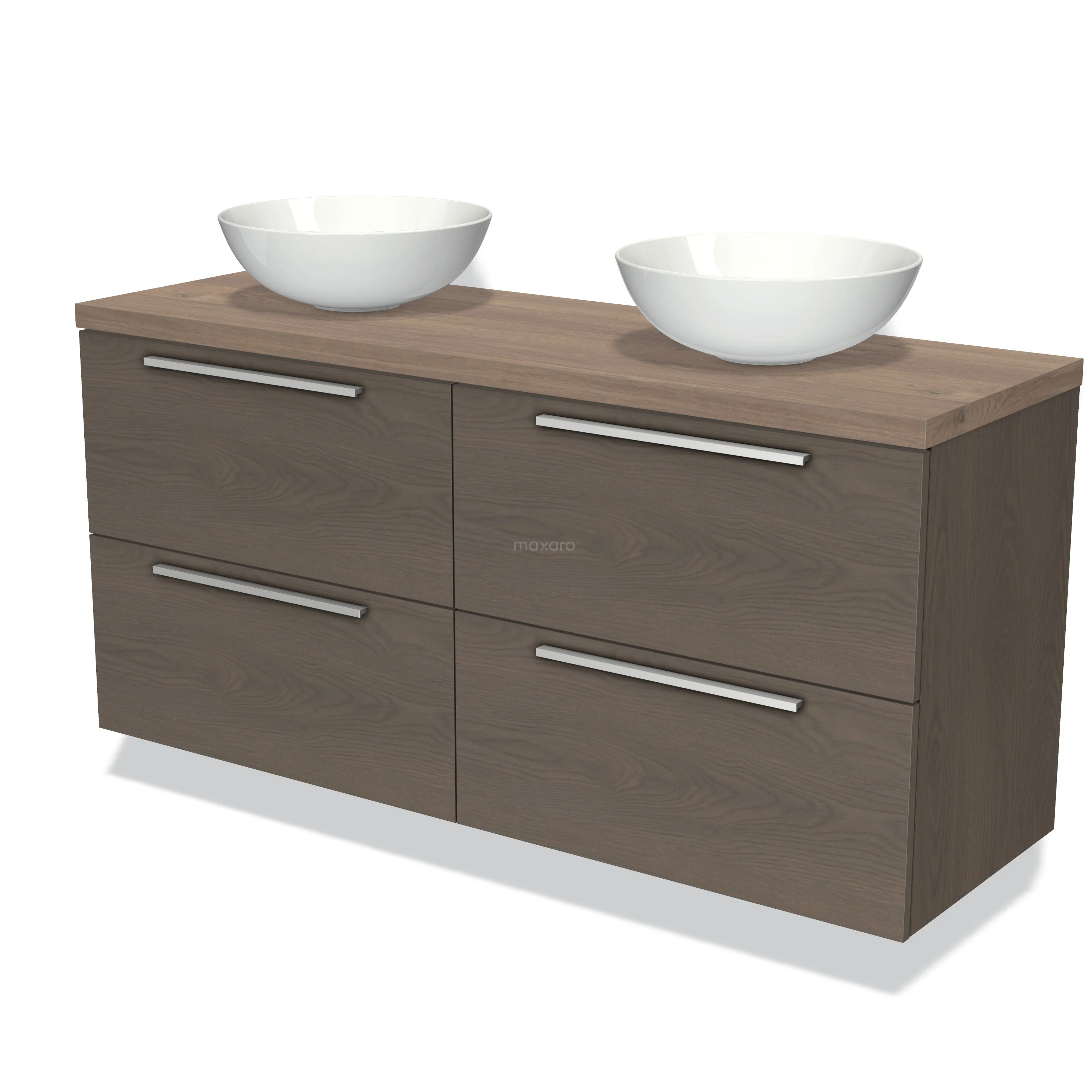 Modulo Plato Badmöbel mit Aufsatzwaschbecken | 140 cm Dunkelbraune Eiche Flach front Mittelbraune Eiche blatt 4 Schubladen