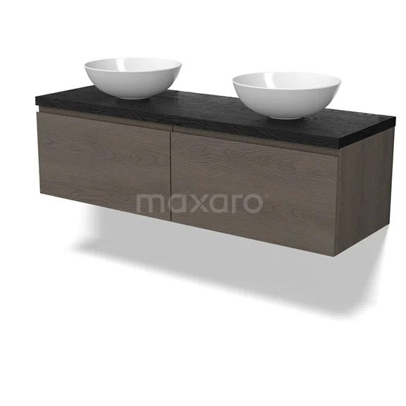 Modulo Plato Badmöbel mit Aufsatzwaschbecken | 140 cm Dunkelbraune Eiche Grifflos front Schwarze Eiche blatt 2 nebeneinanderliegende Schubladen