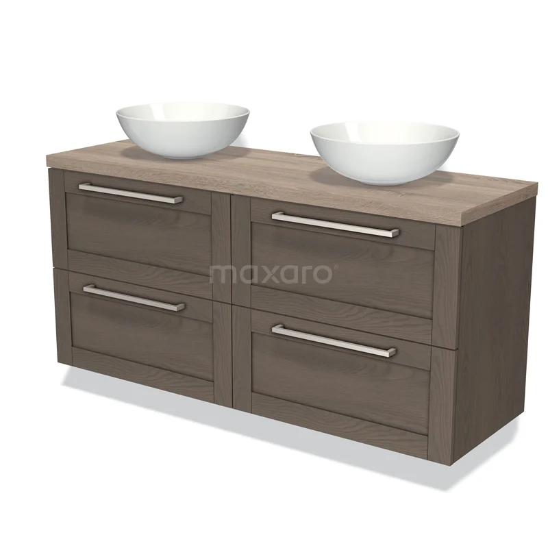 Modulo Plato Badmöbel mit Aufsatzwaschbecken | 140 cm Dunkelbraune Eiche Rahmen front Eiche blatt 4 Schubladen