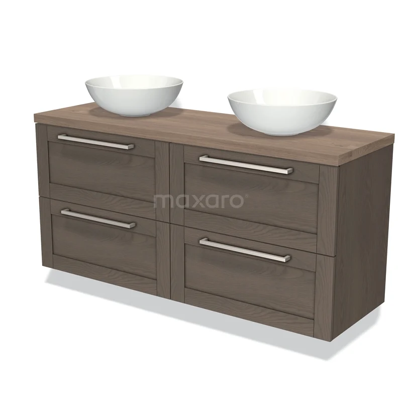 Modulo Plato Badmöbel mit Aufsatzwaschbecken | 140 cm Dunkelbraune Eiche Rahmen front Mittelbraune Eiche blatt 4 Schubladen