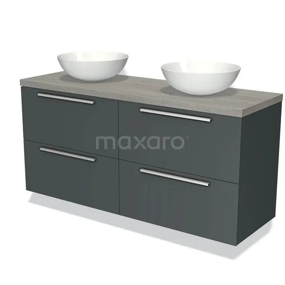 Modulo Plato Badmöbel mit Aufsatzwaschbecken | 140 cm Dunkelgrau Flach front Graue Eiche blatt 4 Schubladen