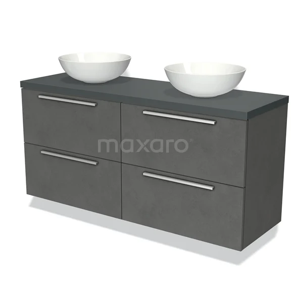 Modulo Plato Badmöbel mit Aufsatzwaschbecken | 140 cm Dunkelgrauer Beton Flach front Dunkelgrau blatt 4 Schubladen