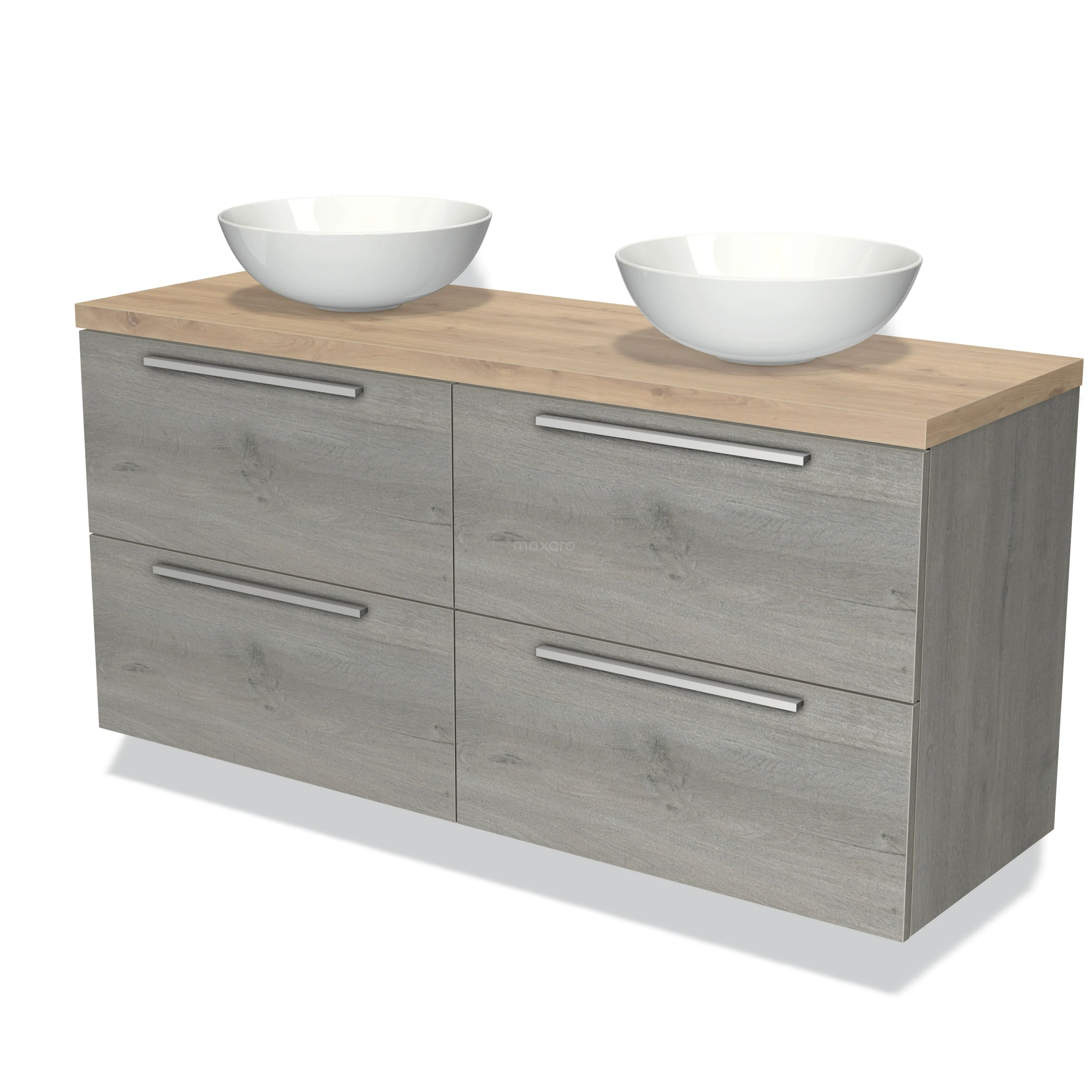 Modulo Plato Badmöbel mit Aufsatzwaschbecken | 140 cm Graue Eiche Flach front Hellbraune Eiche blatt 4 Schubladen