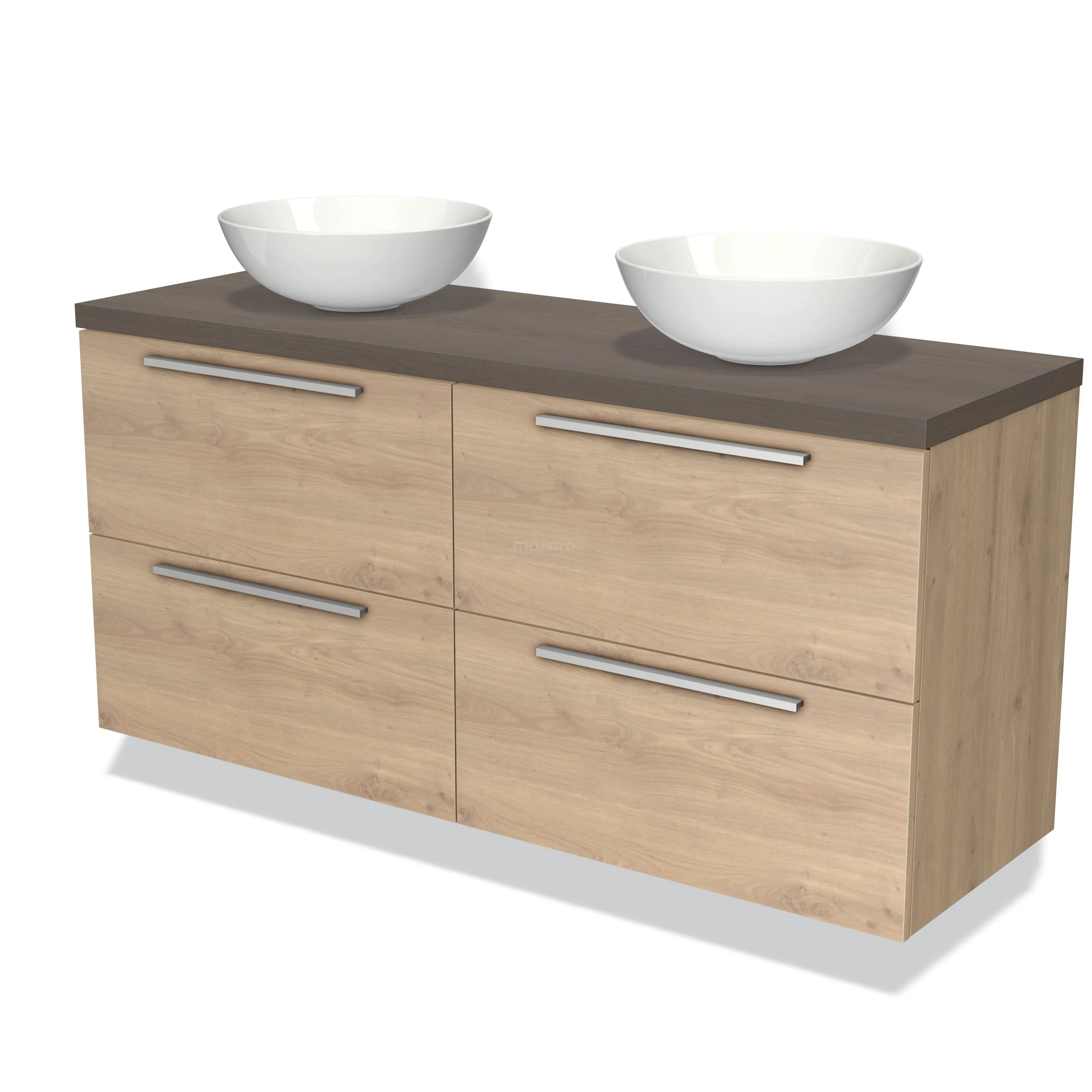 Modulo Plato Badmöbel mit Aufsatzwaschbecken | 140 cm Hellbraune Eiche Flach front Dunkelbraune Eiche blatt 4 Schubladen