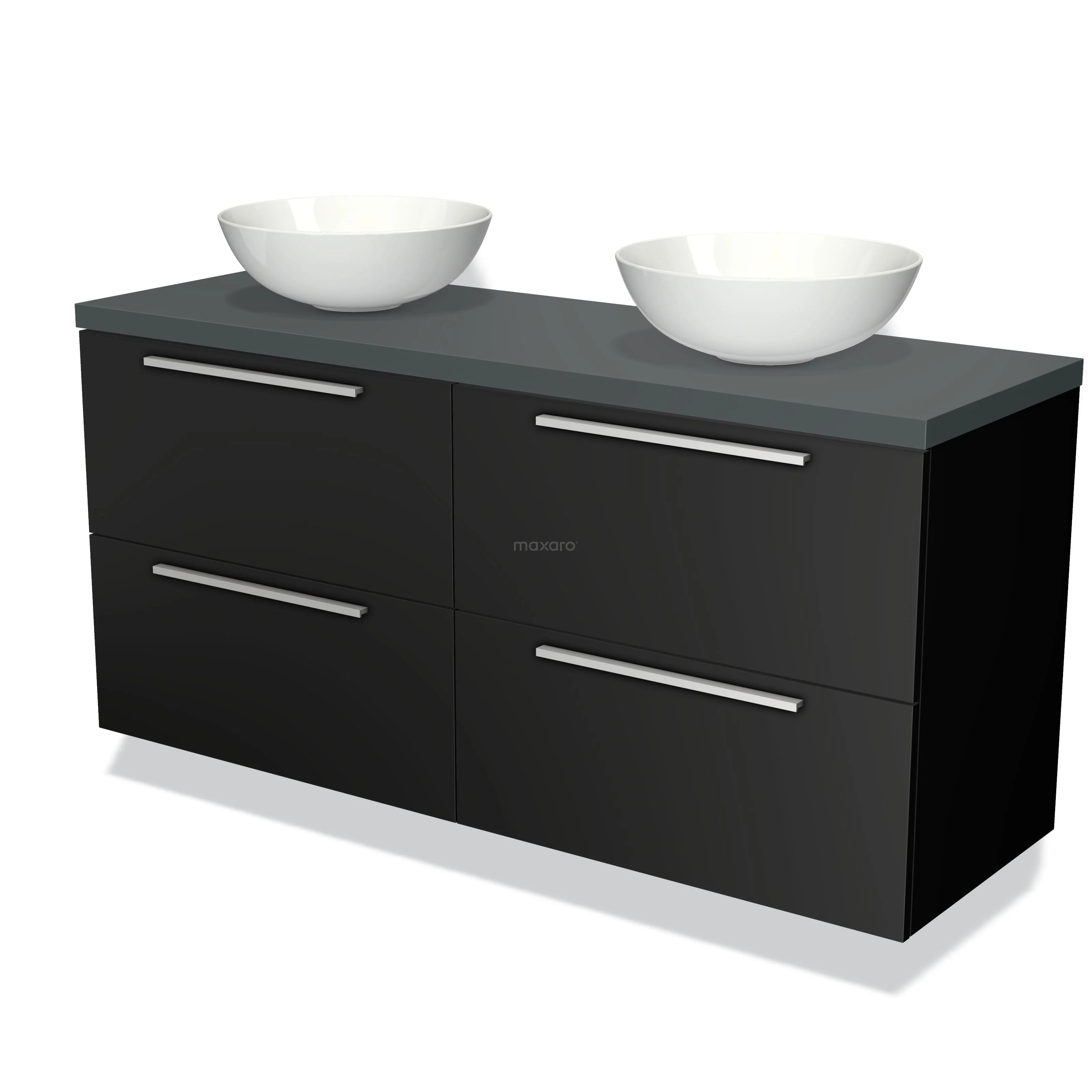 Modulo Plato Badmöbel mit Aufsatzwaschbecken | 140 cm Matt Schwarz Flach front Dunkelgrau blatt 4 Schubladen