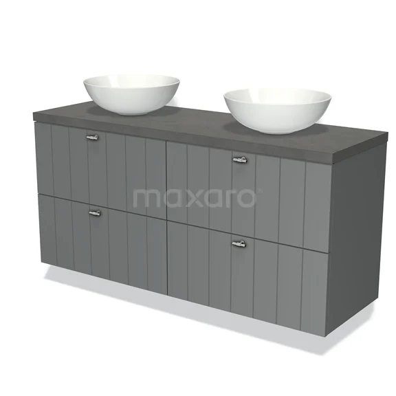Modulo Plato Badmöbel mit Aufsatzwaschbecken | 140 cm Mittelgrau Lamelle front Dunkelgrauer Beton blatt 4 Schubladen