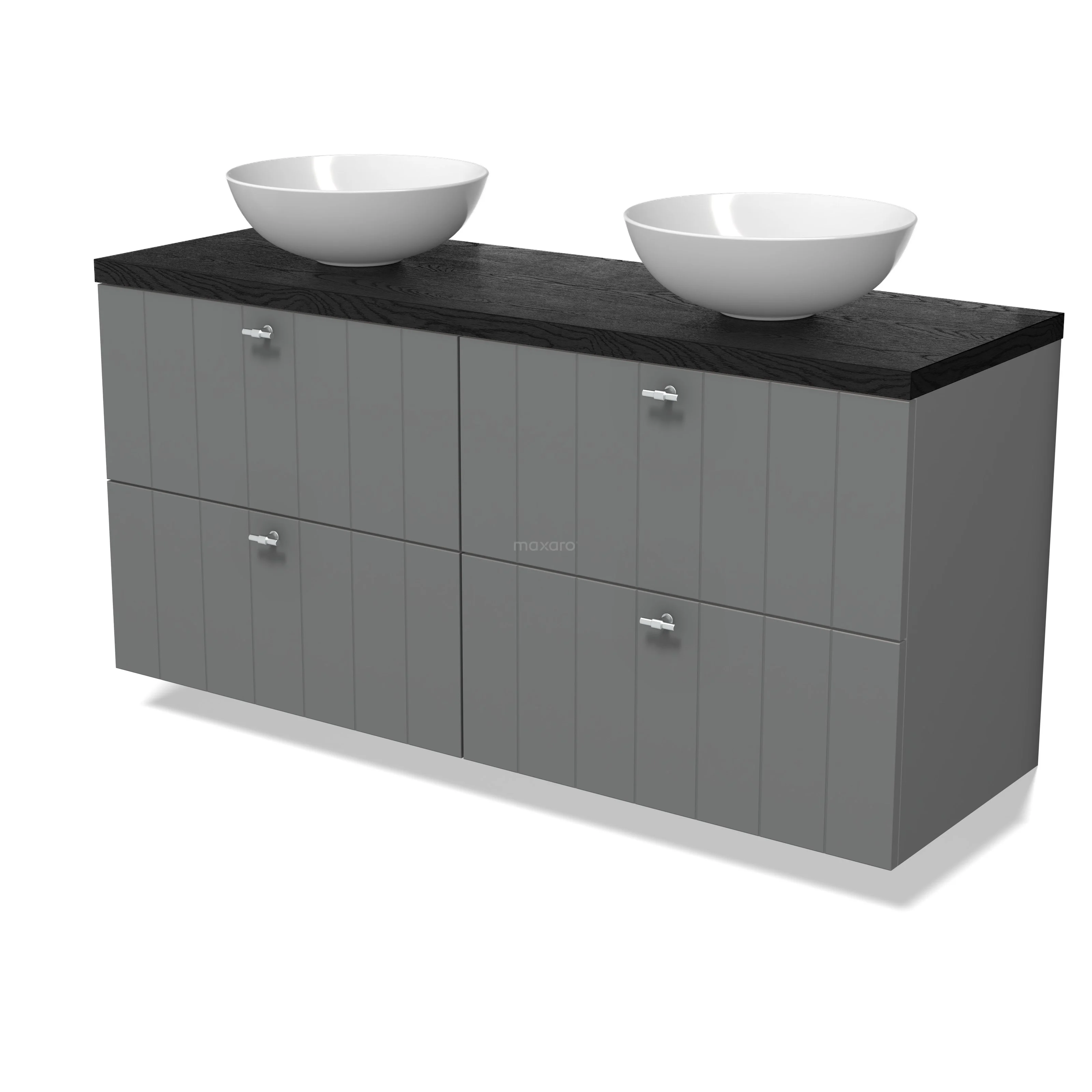 Modulo Plato Badmöbel mit Aufsatzwaschbecken | 140 cm Mittelgrau Lamelle front Schwarze Eiche blatt 4 Schubladen