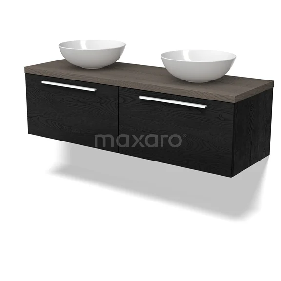 Modulo Plato Badmöbel mit Aufsatzwaschbecken | 140 cm Schwarze Eiche Flach front Dunkelbraune Eiche blatt 2 nebeneinanderliegende Schubladen