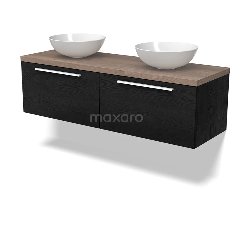 Modulo Plato Badmöbel mit Aufsatzwaschbecken | 140 cm Schwarze Eiche Flach front Mittelbraune Eiche blatt 2 nebeneinanderliegende Schubladen