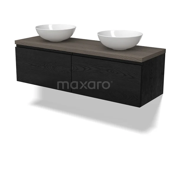 Modulo Plato Badmöbel mit Aufsatzwaschbecken | 140 cm Schwarze Eiche Grifflos front Dunkelbraune Eiche blatt 2 nebeneinanderliegende Schubladen