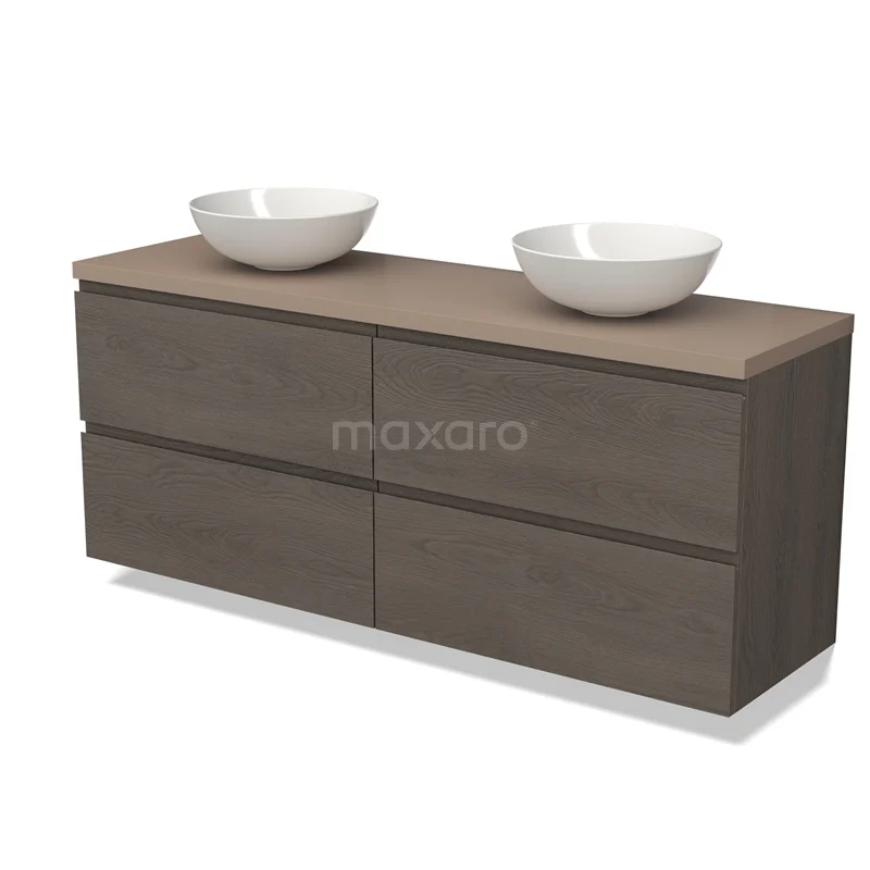 Modulo Plato Badmöbel mit Aufsatzwaschbecken | 160 cm Dunkelbraune Eiche Grifflos front Taupe blatt 4 Schubladen