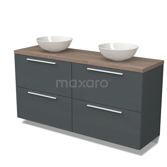 Modulo Plato Badmöbel mit Aufsatzwaschbecken | 160 cm Dunkelgrau Flach front Mittelbraune Eiche blatt 4 hohe Schubladen