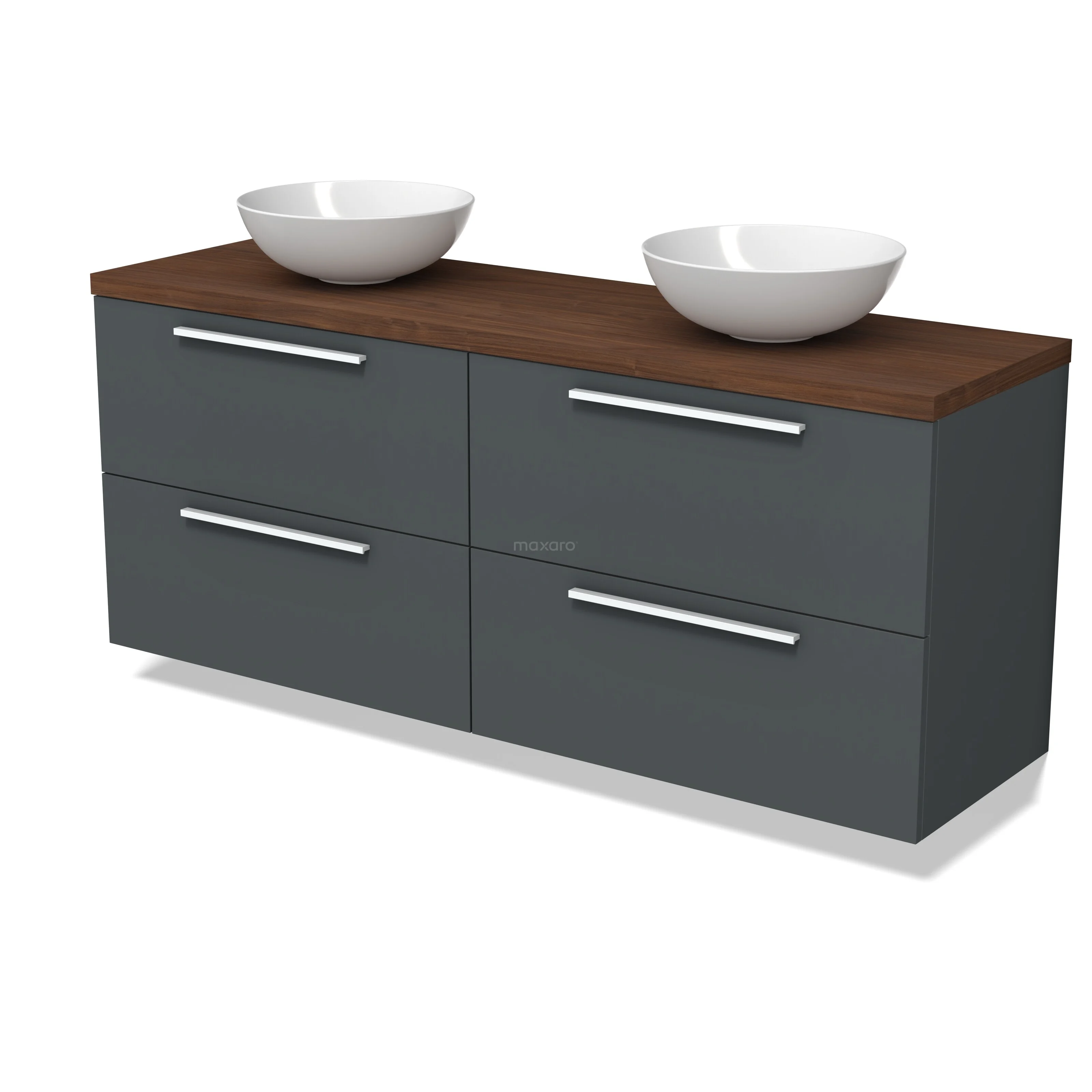 Modulo Plato Badmöbel mit Aufsatzwaschbecken | 160 cm Dunkelgrau Flach front Walnuss blatt 4 Schubladen