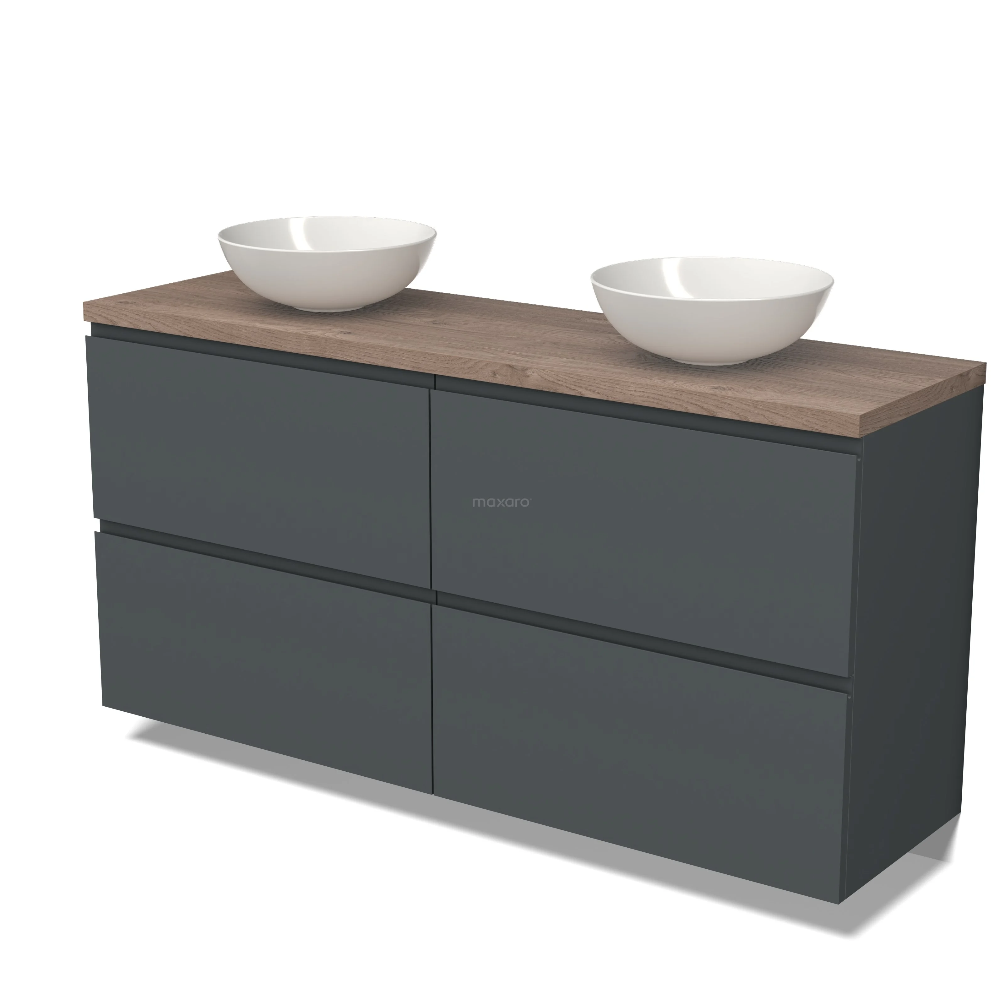 Modulo Plato Badmöbel mit Aufsatzwaschbecken | 160 cm Dunkelgrau Grifflos front Mittelbraune Eiche blatt 4 hohe Schubladen
