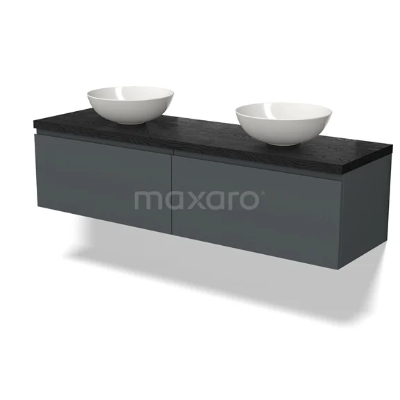 Modulo Plato Badmöbel mit Aufsatzwaschbecken | 160 cm Dunkelgrau Grifflos front Schwarze Eiche blatt 2 nebeneinanderliegende Schubladen