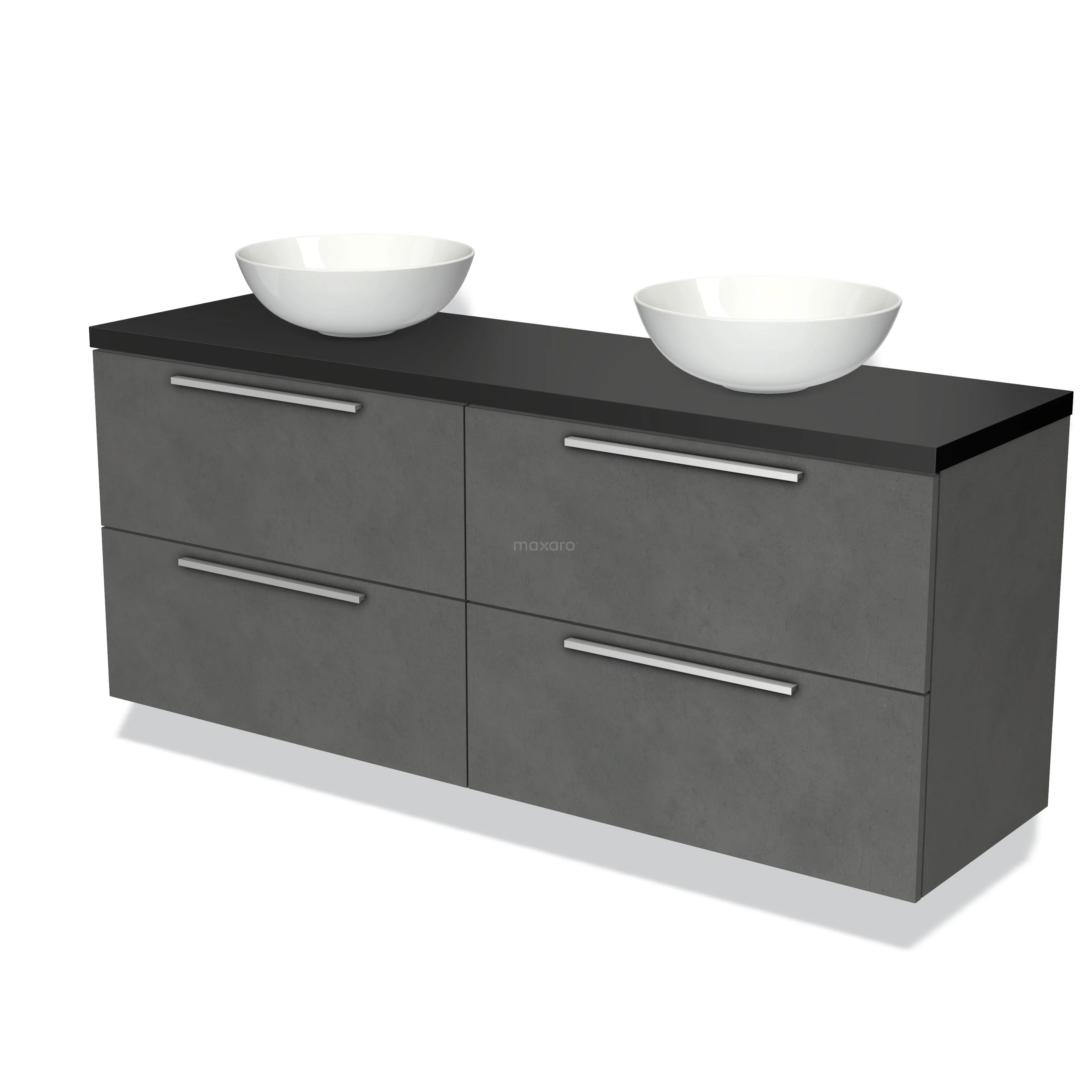 Modulo Plato Badmöbel mit Aufsatzwaschbecken | 160 cm Dunkelgrauer Beton Flach front Matt Schwarz blatt 4 Schubladen