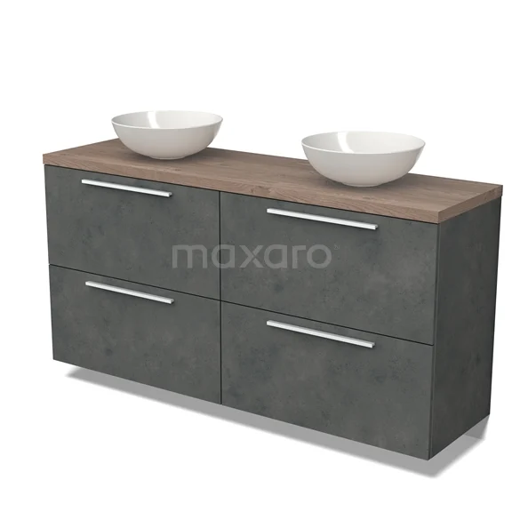 Modulo Plato Badmöbel mit Aufsatzwaschbecken | 160 cm Dunkelgrauer Beton Flach front Mittelbraune Eiche blatt 4 hohe Schubladen